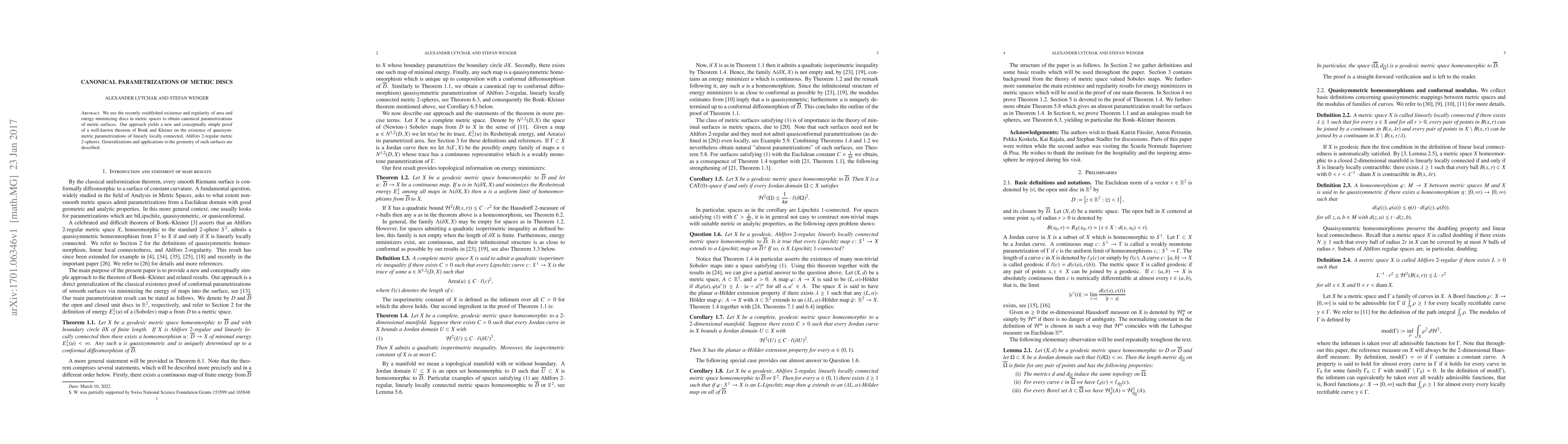 This paper establishes canonical parametrizations of metric surfaces using area and energy minimizing discs, providing a new proof of Bonk and Kleiner's theorem on quasisymmetric parametrizations of Ahlfors $2$-regular metric $2$-spheres, with implications for the geometry of such surfaces.