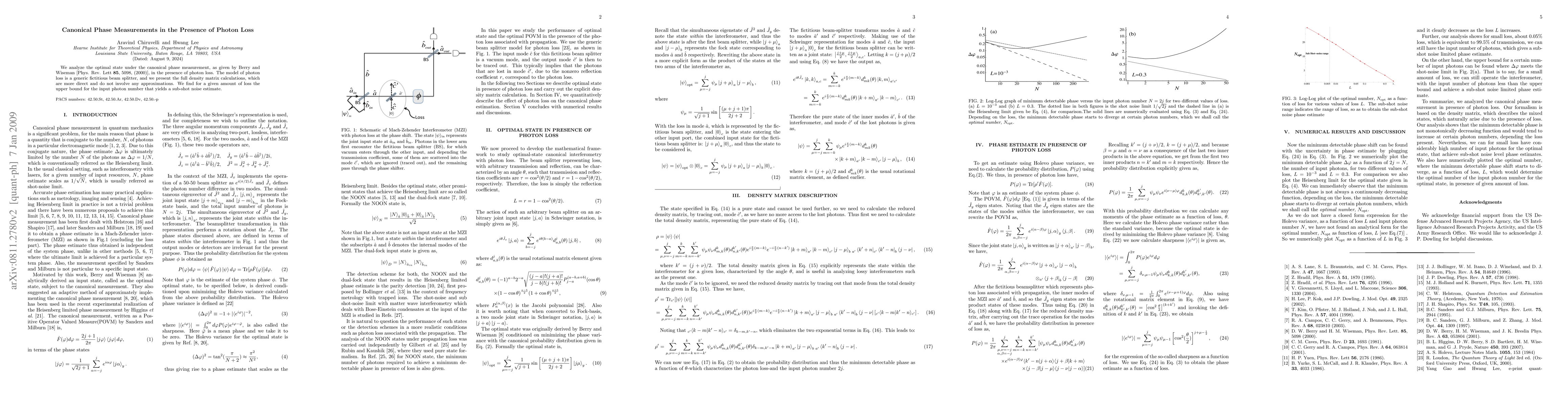 We analyze the optimal state, as given by Berry and Wiseman [Phys. Rev. Lett {\bf 85}, 5098, (2000)], under the canonical phase measurement in the presence of photon loss. The model of photon loss is a generic fictitious beam splitter, and we present the full density matrix calculations, which are more direct and do not involve any approximations. We find for a given amount of loss the upper bound for the input photon number that yields a sub-shot noise estimate.