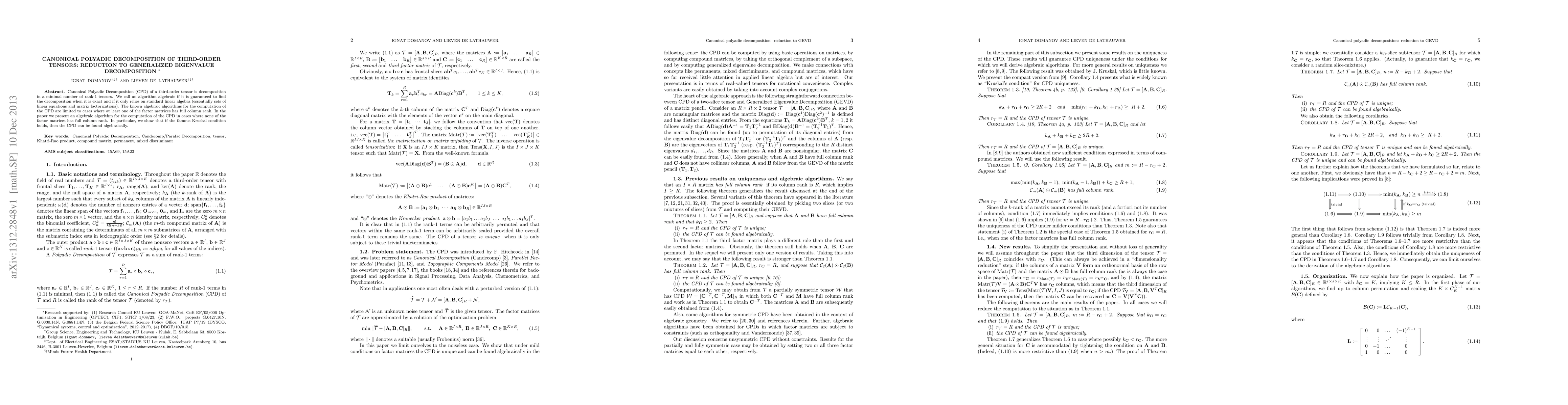 This paper introduces an algebraic algorithm for computing the Canonical Polyadic Decomposition (CPD) of third-order tensors, even when none of the factor matrices have full column rank. It demonstrates that under the Kruskal condition, CPD can be reduced to a generalized eigenvalue decomposition.