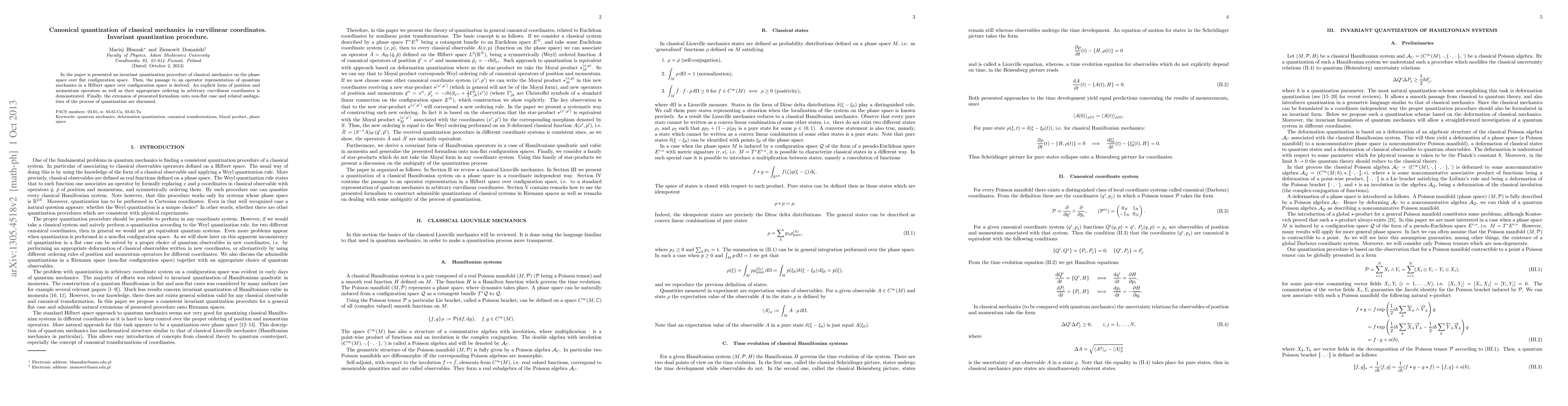 This paper introduces an invariant quantization procedure for classical mechanics in curvilinear coordinates, deriving an operator representation for quantum mechanics and discussing ambiguities in extending the formalism to non-flat spaces. The explicit form of the position and momentum operators in curvilinear coordinates is also demonstrated.