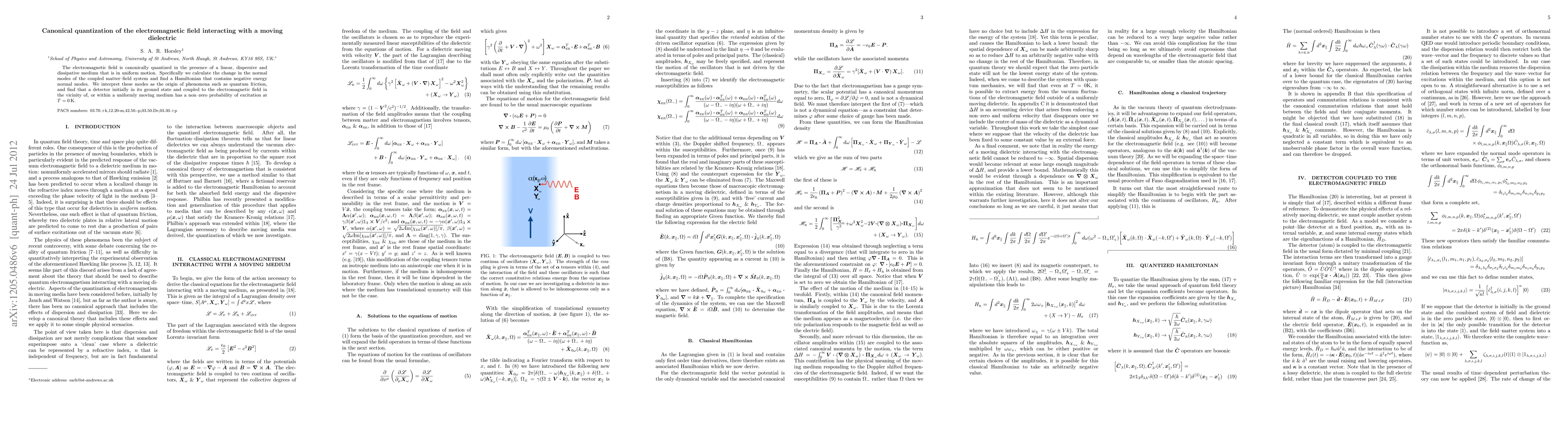 This paper canonically quantizes the electromagnetic field interacting with a uniformly moving dielectric, revealing negative energy normal modes that underpin phenomena like quantum friction. At T=0K, a detector coupled to the field within or near the moving medium has a non-zero probability of excitation.