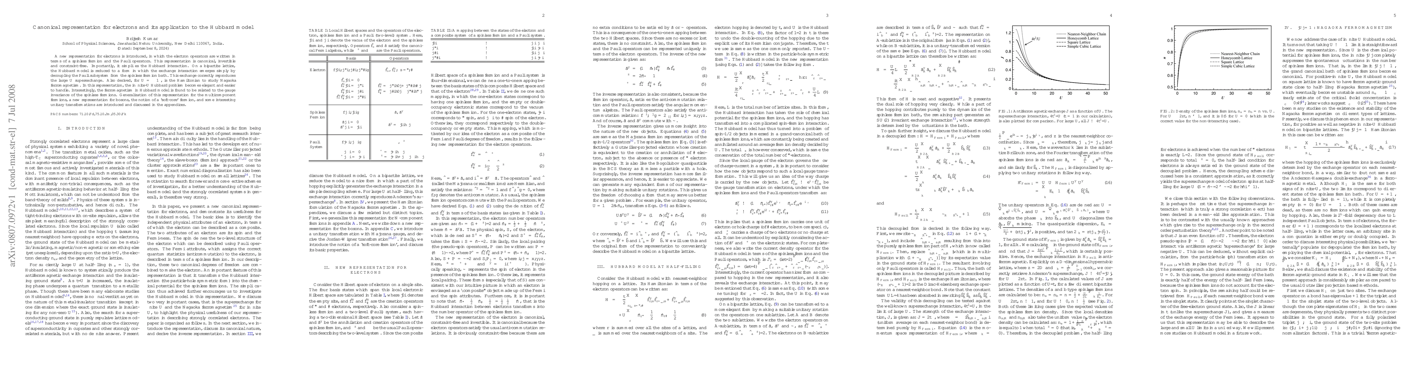 This research introduces a novel canonical representation for electrons using spinless fermions and Pauli operators, simplifying the Hubbard interaction. On bipartite lattices, it reduces the Hubbard model to reveal exchange interaction, accurately reproducing large U superexchange. The infinite-U Hubbard problem is made elegant for studying Nagaoka ferromagnetism, linking ferromagnetism to gauge invariance of spinless fermions.