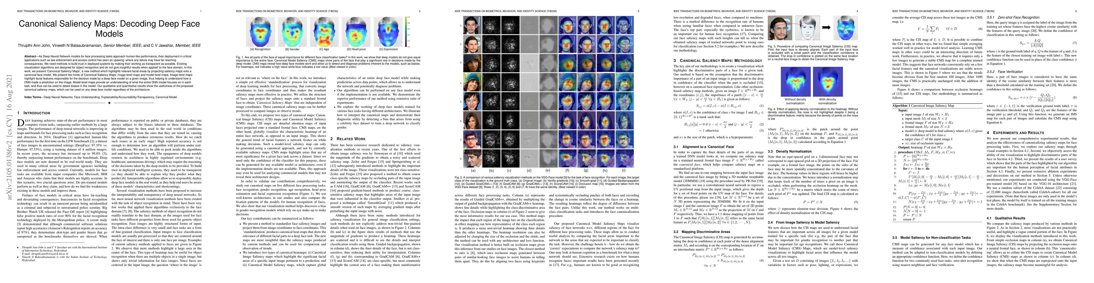 This paper introduces "Canonical Saliency Maps" to enhance transparency in deep face models by projecting saliency maps onto a canonical face model, providing insights into both specific image predictions and overall model biases. The proposed method includes image-level and model-level maps to improve trust and accountability in critical applications.