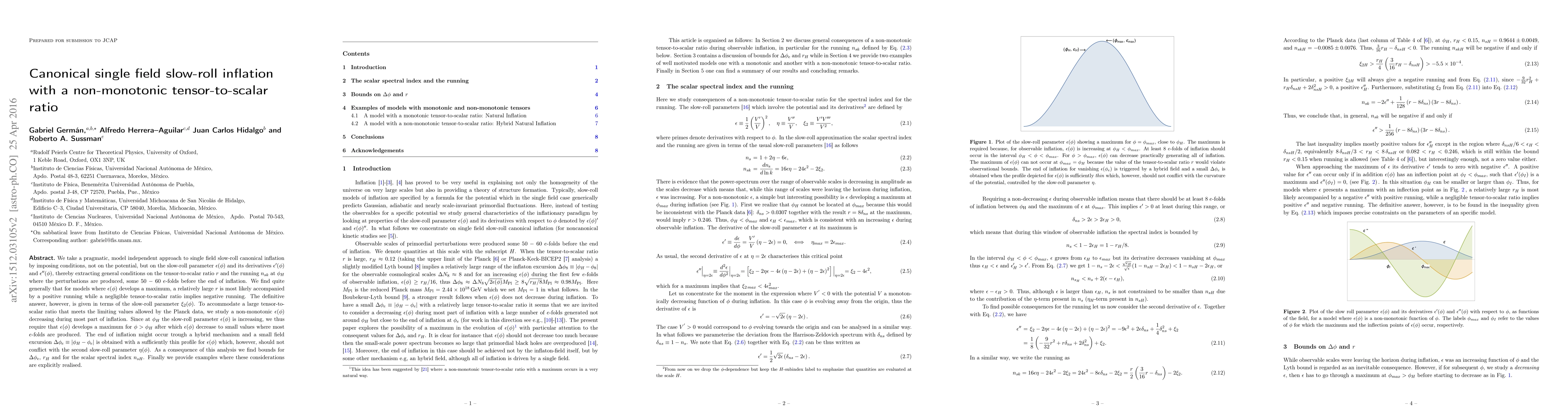 We take a pragmatic, model independent approach to single field slow-roll canonical inflation by imposing conditions, not on the potential, but on the slow-roll parameter $\epsilon(\phi)$ and its derivatives $\epsilon^{\prime }(\phi)$ and $\epsilon^{\prime\prime }(\phi)$, thereby extracting general conditions on the tensor-to-scalar ratio $r$ and the running $n_{sk}$ at $\phi_{H}$ where the perturbations are produced, some $50$ $-$ $60$ $e$-folds before the end of inflation. We find quite generally that for models where $\epsilon(\phi)$ develops a maximum, a relatively large $r$ is most likely accompanied by a positive running while a negligible tensor-to-scalar ratio implies negative running. The definitive answer, however, is given in terms of the slow-roll parameter $\xi_2(\phi)$. To accommodate a large tensor-to-scalar ratio that meets the limiting values allowed by the Planck data, we study a non-monotonic $\epsilon(\phi)$ decreasing during most part of inflation. Since at $\phi_{H}$ the slow-roll parameter $\epsilon(\phi)$ is increasing, we thus require that $\epsilon(\phi)$ develops a maximum for $\phi > \phi_{H}$ after which $\epsilon(\phi)$ decrease to small values where most $e$-folds are produced. The end of inflation might occur trough a hybrid mechanism and a small field excursion $\Delta\phi_e\equiv |\phi_H-\phi_e |$ is obtained with a sufficiently thin profile for $\epsilon(\phi)$ which, however, should not conflict with the second slow-roll parameter $\eta(\phi)$. As a consequence of this analysis we find bounds for $\Delta \phi_e$, $r_H$ and for the scalar spectral index $n_{sH}$. Finally we provide examples where these considerations are explicitly realised.