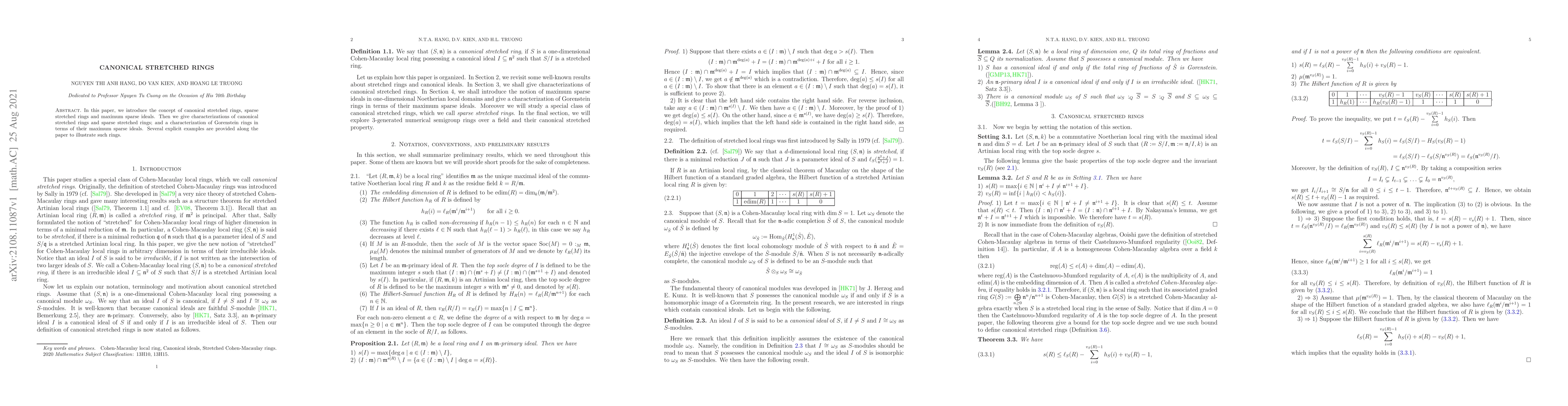This paper introduces the concept of canonical stretched rings, sparse stretched rings, and maximum sparse ideals, providing their characterizations and illustrating Gorenstein rings in terms of maximum sparse ideals with explicit examples.