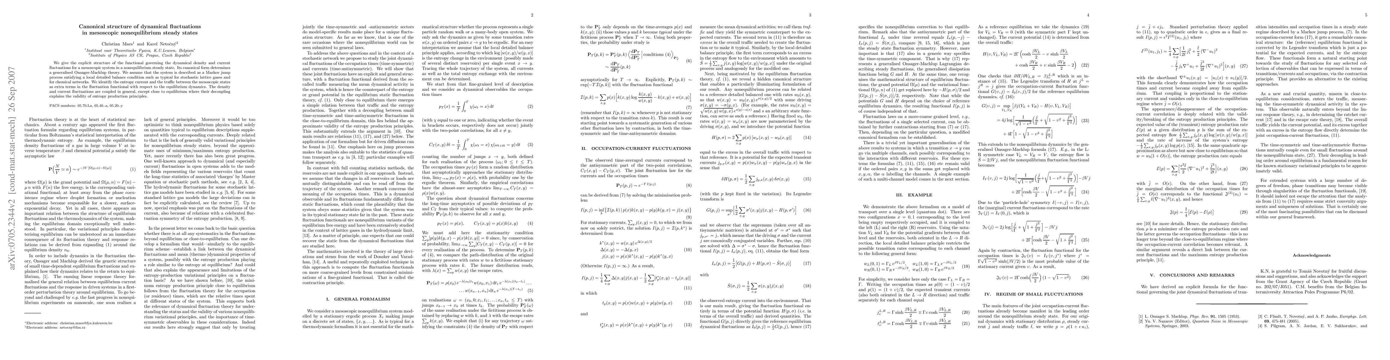 This paper presents the canonical structure of dynamical fluctuations in mesoscopic nonequilibrium steady states, establishing a generalized Onsager-Machlup theory for Markov jump processes. It introduces the entropy current and traffic as additional terms in the fluctuation functional, revealing the coupling of density and current fluctuations except near equilibrium.