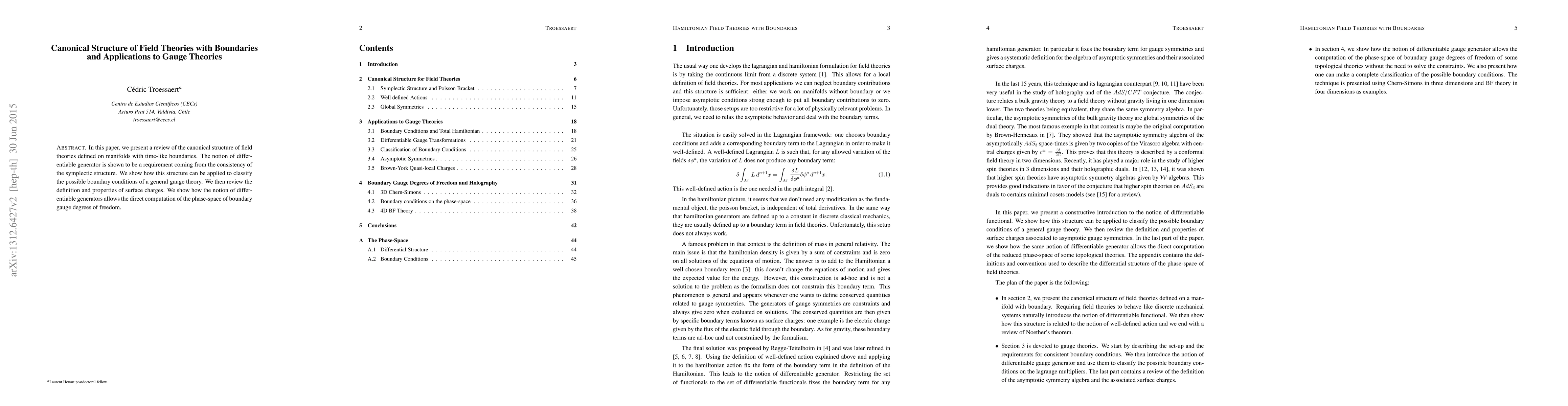 In this paper, we present a review of the canonical structure of field theories defined on manifolds with time-like boundaries. The notion of differentiable generator is shown to be a requirement coming from the consistency of the symplectic structure. We show how this structure can be applied to classify the possible boundary conditions of a general gauge theory. We then review the definition and properties of surface charges. We show how the notion of differentiable generators allows the direct computation of the phase-space of boundary gauge degrees of freedom.