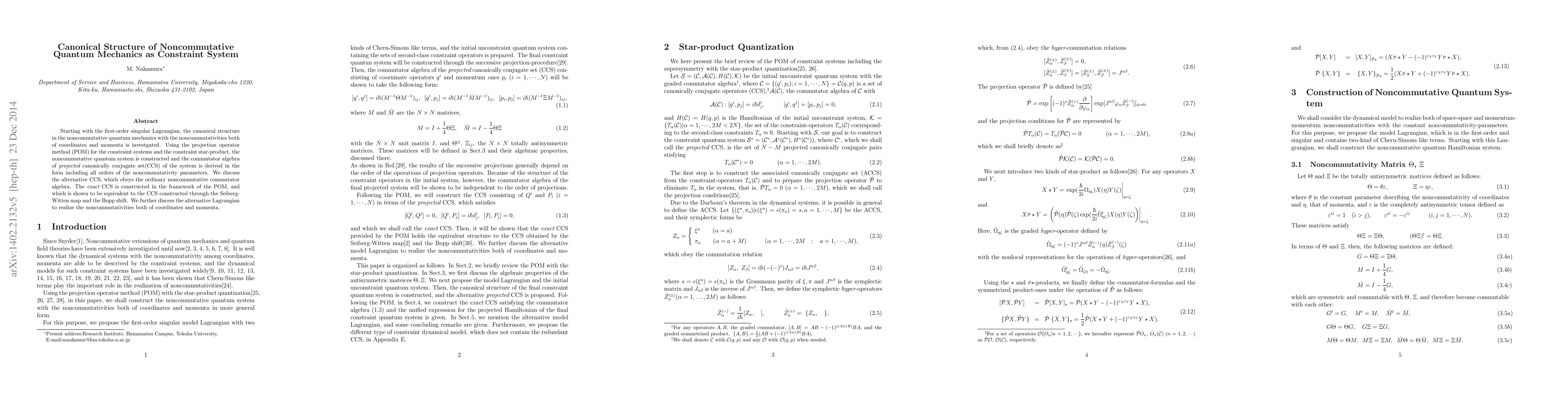 This paper investigates the canonical structure of noncommutative quantum mechanics by constructing a noncommutative quantum system using the projection operator method and the constraint star-product. It derives the commutator algebra of the projected canonically conjugate set, demonstrating equivalence with systems constructed via the Seiberg-Witten map and Bopp shift.