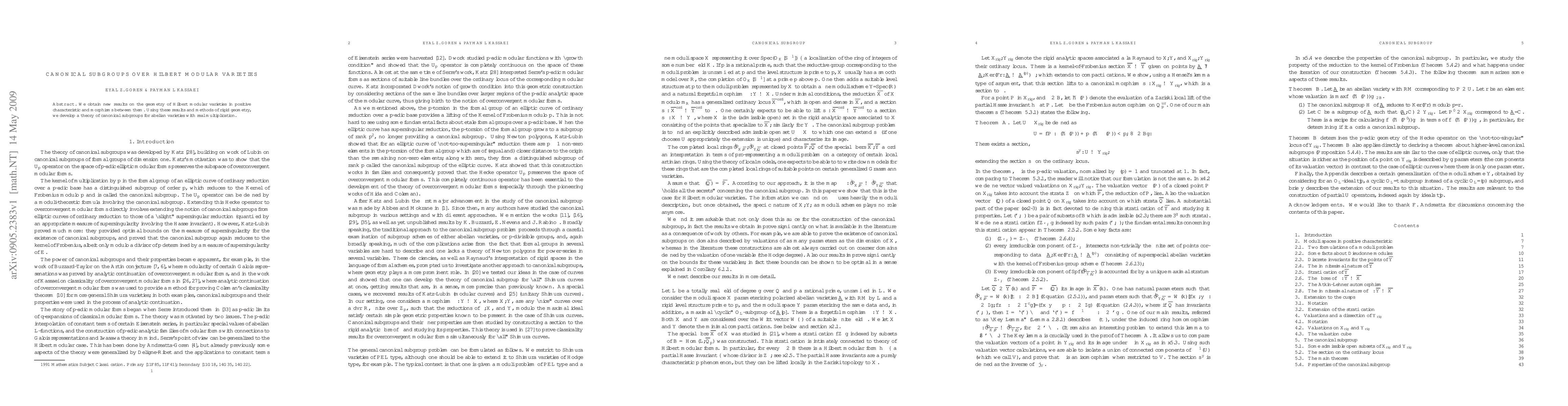 The paper presents new geometric insights into Hilbert modular varieties in positive characteristic, focusing on morphisms between them, and introduces a theory of canonical subgroups for abelian varieties with real multiplication using rigid geometry methods.