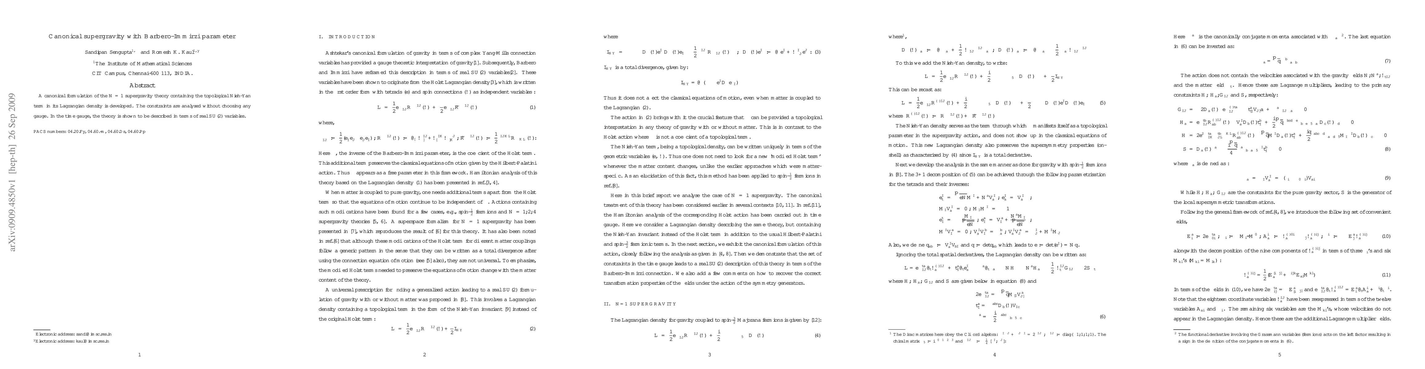 A canonical formulation of the N=1 supergravity theory containing the topological Nieh-Yan term in its Lagrangian density is developed. The constraints are analysed without choosing any gauge. In the time gauge, the theory is shown to be described in terms of real SU(2) variables.