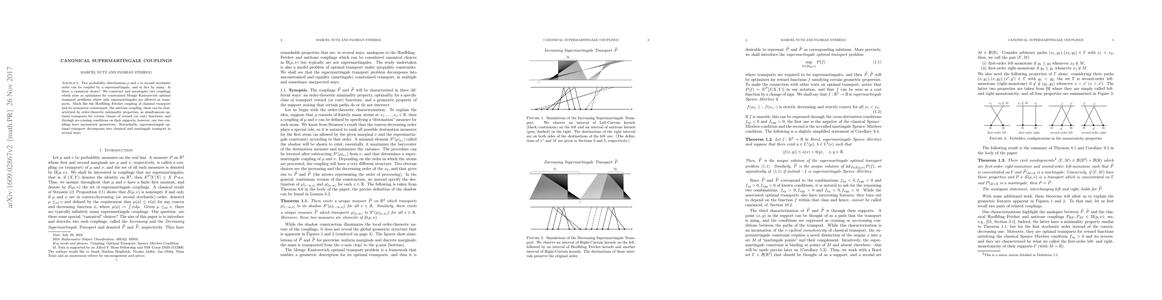 Two probability distributions $\mu$ and $\nu$ in second stochastic order can be coupled by a supermartingale, and in fact by many. Is there a canonical choice? We construct and investigate two couplings which arise as optimizers for constrained Monge-Kantorovich optimal transport problems where only supermartingales are allowed as transports. Much like the Hoeffding-Fr\'echet coupling of classical transport and its symmetric counterpart, the antitone coupling, these can be characterized by order-theoretic minimality properties, as simultaneous optimal transports for certain classes of reward (or cost) functions, and through no-crossing conditions on their supports; however, our two couplings have asymmetric geometries. Remarkably, supermartingale optimal transport decomposes into classical and martingale transport in several ways.