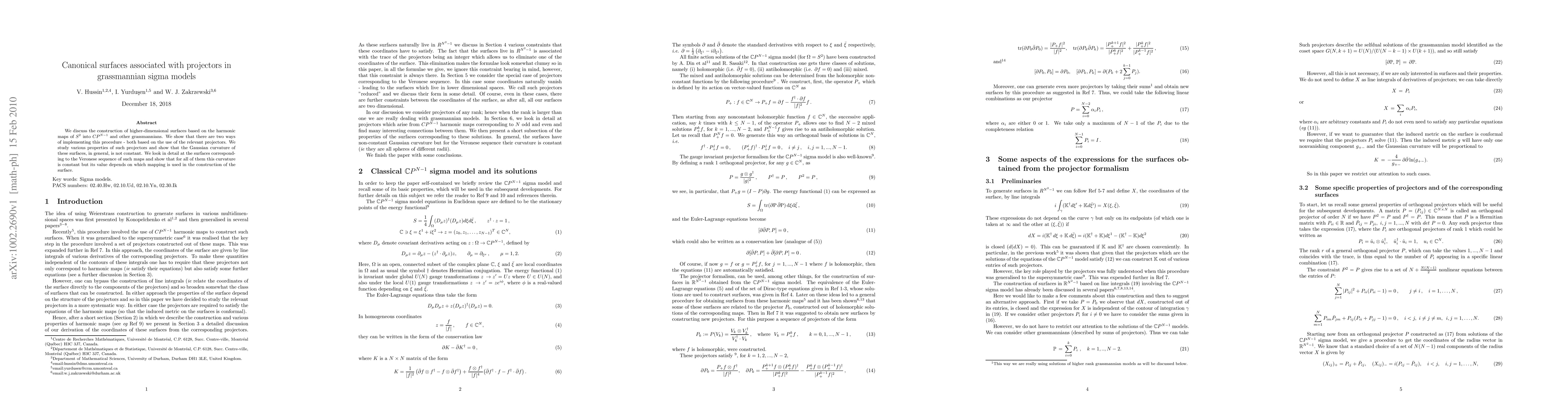 We discuss the construction of higher-dimensional surfaces based on the harmonic maps of $S^2$ into $CP^{N-1}$ and other grassmannians. We show that there are two ways of implementing this procedure - both based on the use of the relevant projectors. We study various properties of such projectors and show that the Gaussian curvature of these surfaces, in general, is not constant. We look in detail at the surfaces corresponding to the Veronese sequence of such maps and show that for all of them this curvature is constant but its value depends on which mapping is used in the construction of the surface.