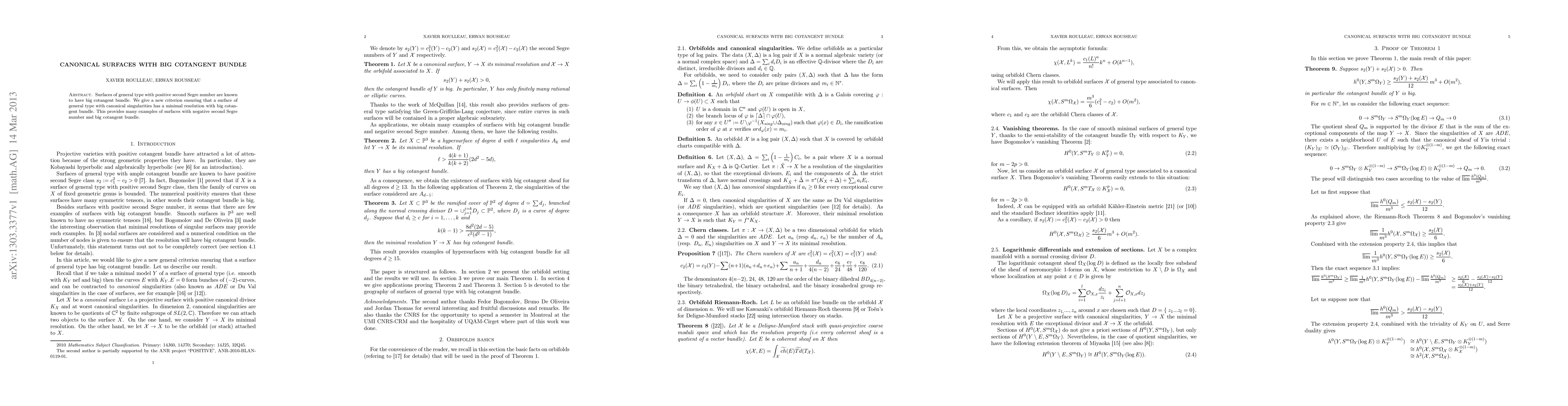 This paper establishes a new criterion for surfaces of general type with canonical singularities to have a minimal resolution with a big cotangent bundle, providing examples of such surfaces that previously had negative second Segre numbers.