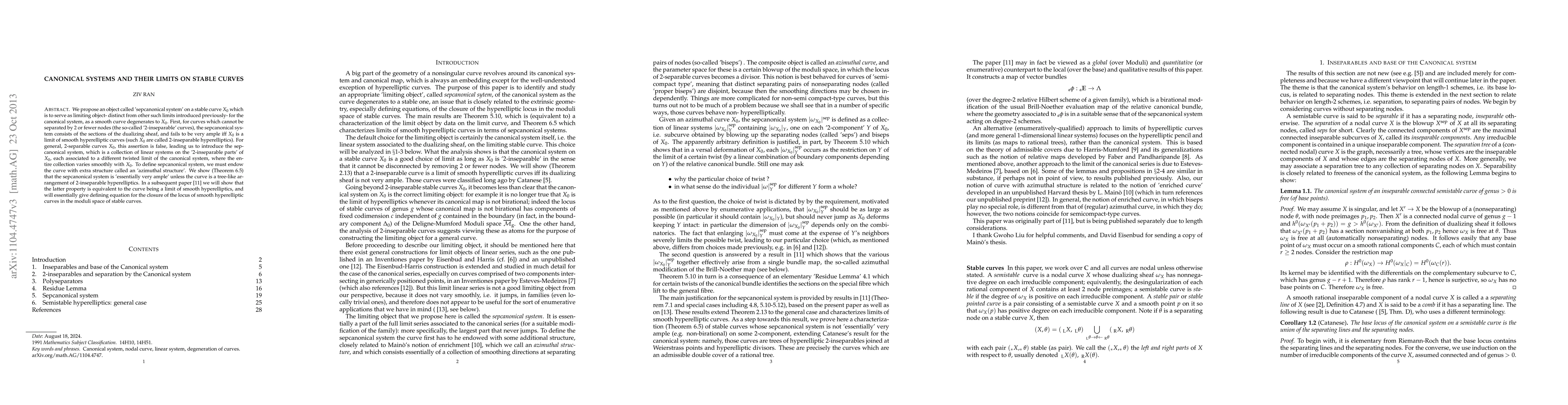 This paper introduces a novel 'sepcanonical system' on stable curves, serving as a limit for the canonical system during degeneration to a curve $X_0$. For '2-inseparable' curves, the sepcanonical system corresponds to sections of the dualizing sheaf, which is non-ample if $X_0$ limits from smooth hyperelliptic curves. For general '2-separable' curves, the sepcanonical system is defined using an 'azimuthal structure' and is shown to be 'essentially very ample' unless $X_0$ is a tree-like arrangement of such hyperelliptics.