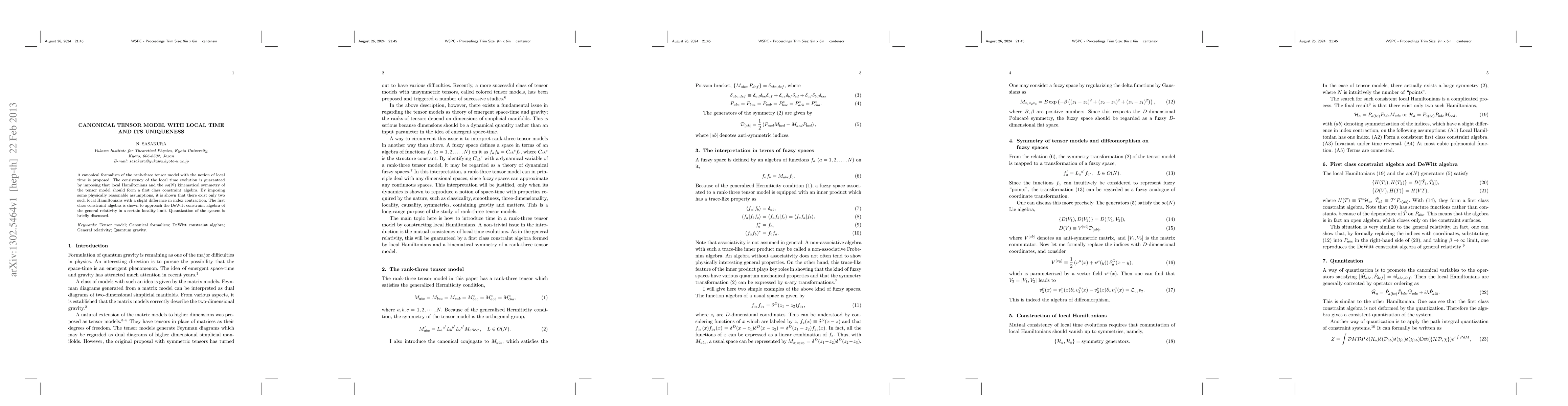 This paper proposes a canonical tensor model with local time, ensuring its evolution's consistency through first-class constraint algebra. It demonstrates the uniqueness of two local Hamiltonians and their convergence to the DeWitt algebra in a locality limit, with a brief discussion on quantization.