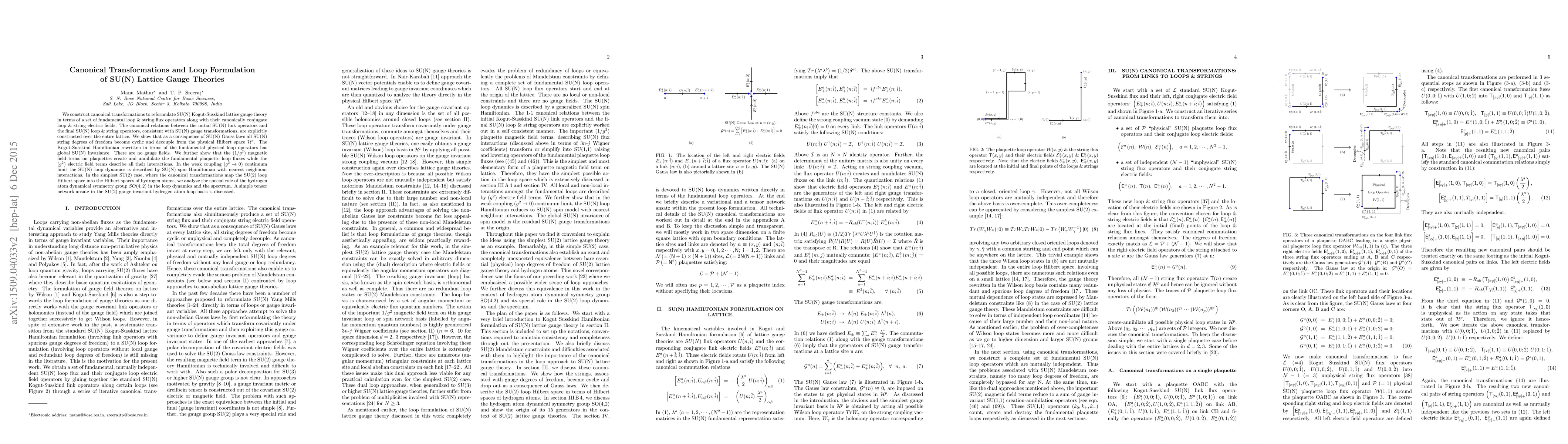 This paper constructs canonical transformations to reformulate SU(N) lattice gauge theory using loop and string flux operators, decoupling string degrees of freedom and showing SU(N) spin Hamiltonian dynamics in the weak coupling limit. The SU(2) case reveals the role of the $SO(4,2)$ symmetry group and a tensor network ansatz for the gauge-invariant hydrogen atom loop basis.