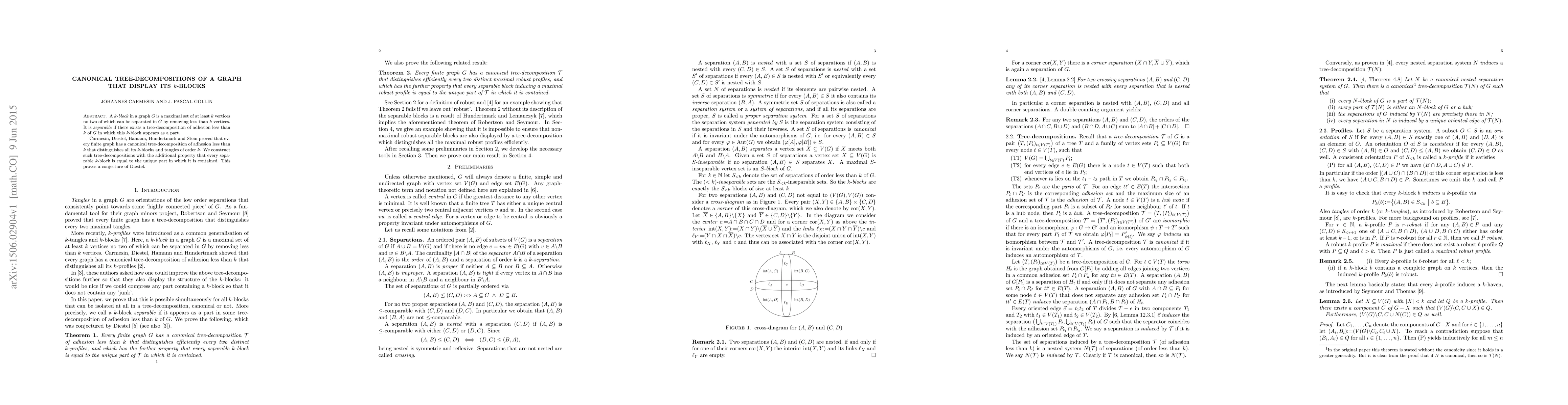 This paper constructs canonical tree-decompositions for finite graphs that distinguish all $k$-blocks and tangles of order $k$. It proves that every separable $k$-block is uniquely represented in these decompositions, thus confirming a conjecture by Diestel.