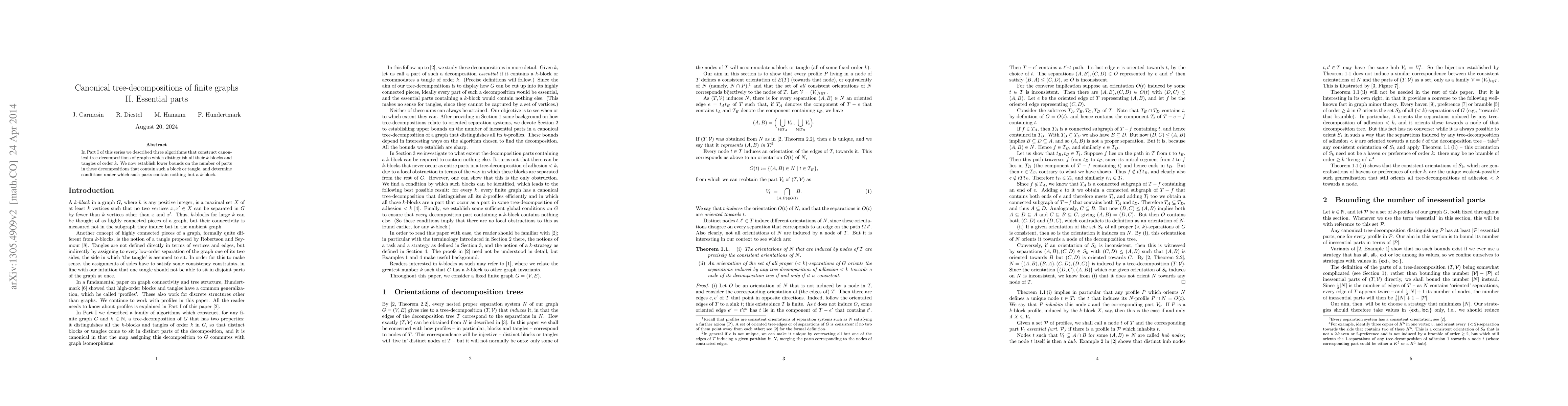 This paper builds on previous work by presenting bounds on the number of parts in canonical tree-decompositions that lack k-blocks and tangles, and it identifies conditions where these parts exclusively contain a k-block. The study aims to enhance understanding of graph structure through these decompositions.