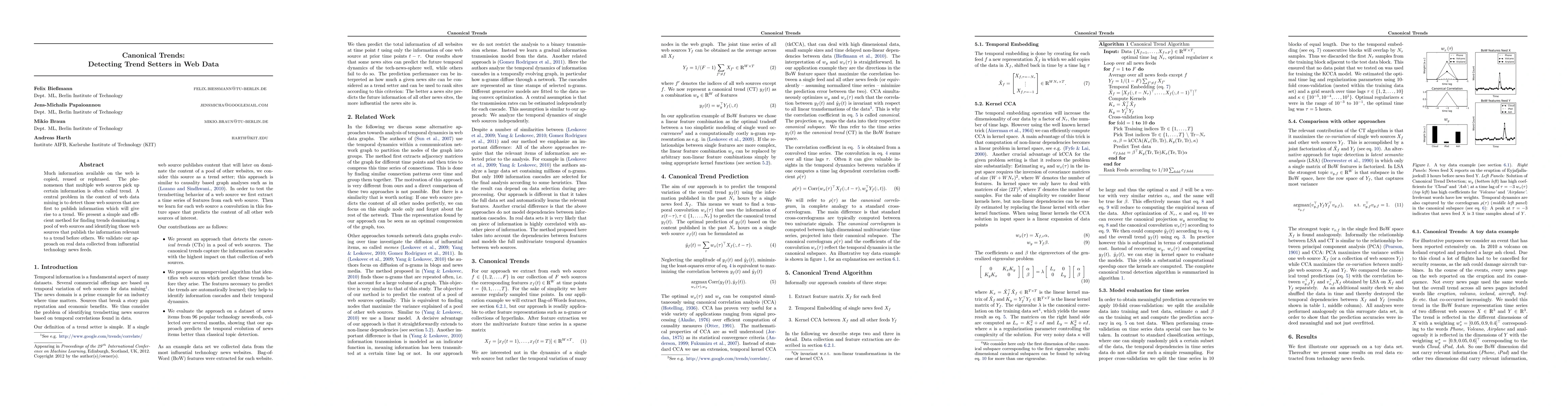 A new method detects trend setters in web data by identifying sources that publish information before others, highlighting their contribution to emerging trends. This approach is validated on real data from influential technology news feeds.