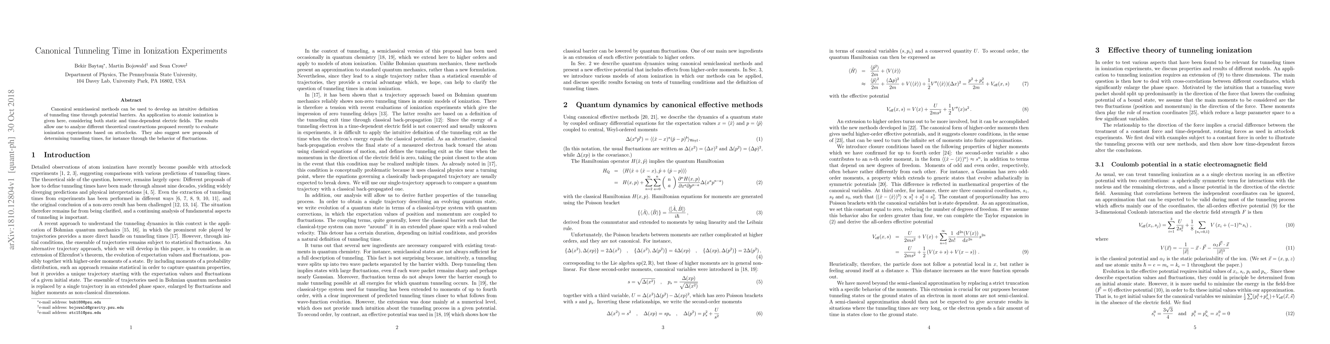 Canonical semiclassical methods can be used to develop an intuitive definition of tunneling time through potential barriers. An application to atomic ionization is given here, considering both static and time-dependent electric fields. The results allow one to analyze different theoretical constructions proposed recently to evaluate ionization experiments based on attoclocks. They also suggest new proposals of determining tunneling times, for instance through the behavior of fluctuations.