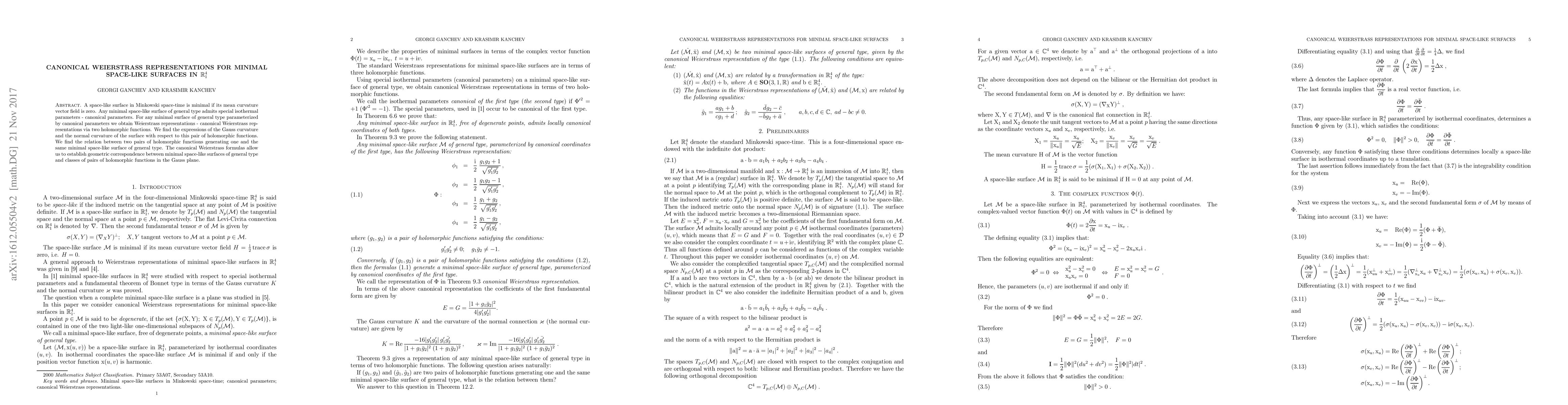 This paper develops canonical Weierstrass representations for minimal space-like surfaces in $\RR^4_1$, deriving expressions for Gauss and normal curvatures via holomorphic functions. It also establishes geometric correspondence between these surfaces and classes of holomorphic function pairs in the Gauss plane.