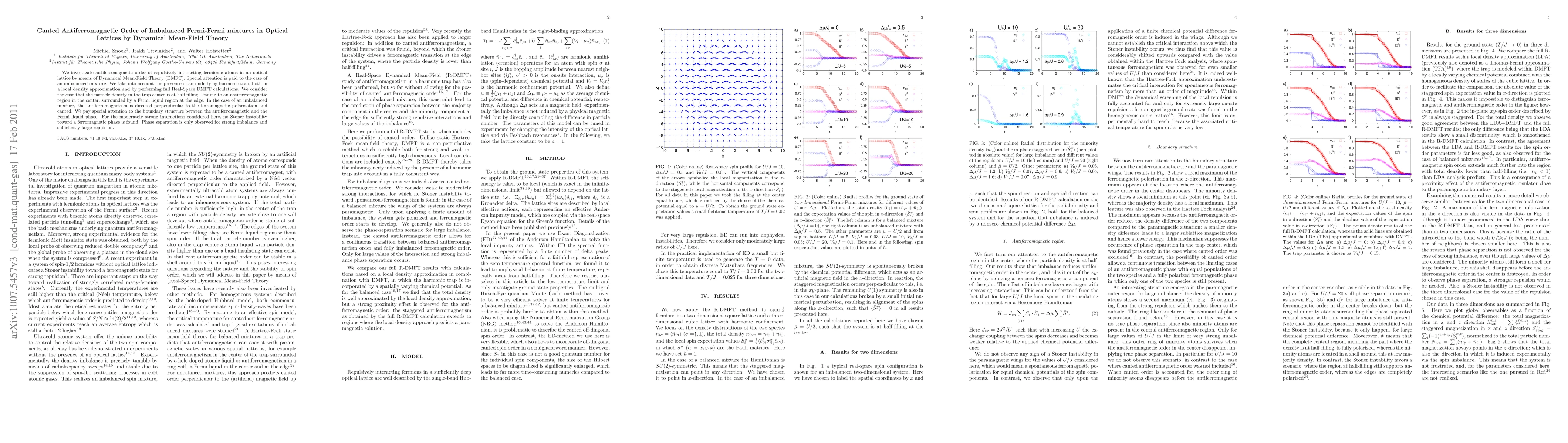 This paper uses Dynamical Mean-Field Theory to study antiferromagnetic order in imbalanced Fermi-Fermi mixtures in optical lattices, revealing canted antiferromagnetic behavior and phase separation under strong imbalance and repulsion, without inducing a Stoner instability towards ferromagnetism.
