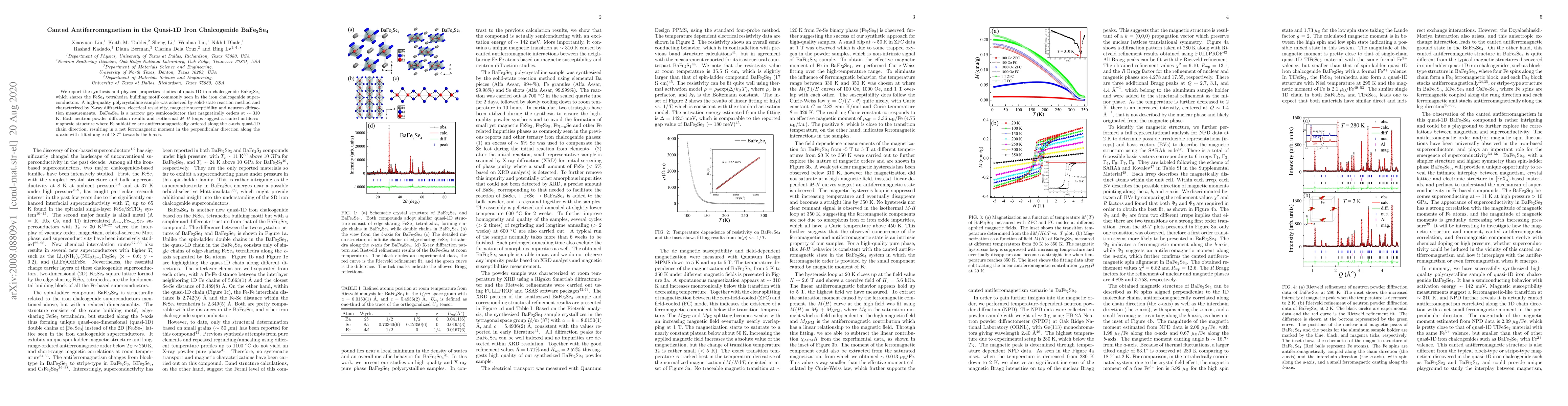 This study synthesizes and investigates BaFe$_2$Se$_4$, a quasi-1D iron chalcogenide with FeSe$_4$ tetrahedra. The material exhibits canted antiferromagnetism at ~310 K, characterized by a net ferromagnetic moment due to the tilted Fe sublattices.
