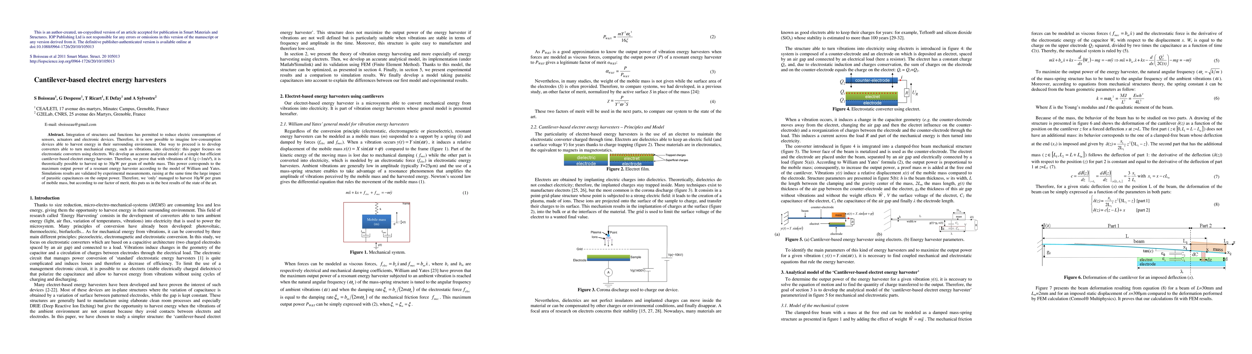 Researchers developed a cantilever-based electret energy harvester that can harness up to 30μW of power per gram of mobile mass from vibrations, outperforming current state-of-the-art results.