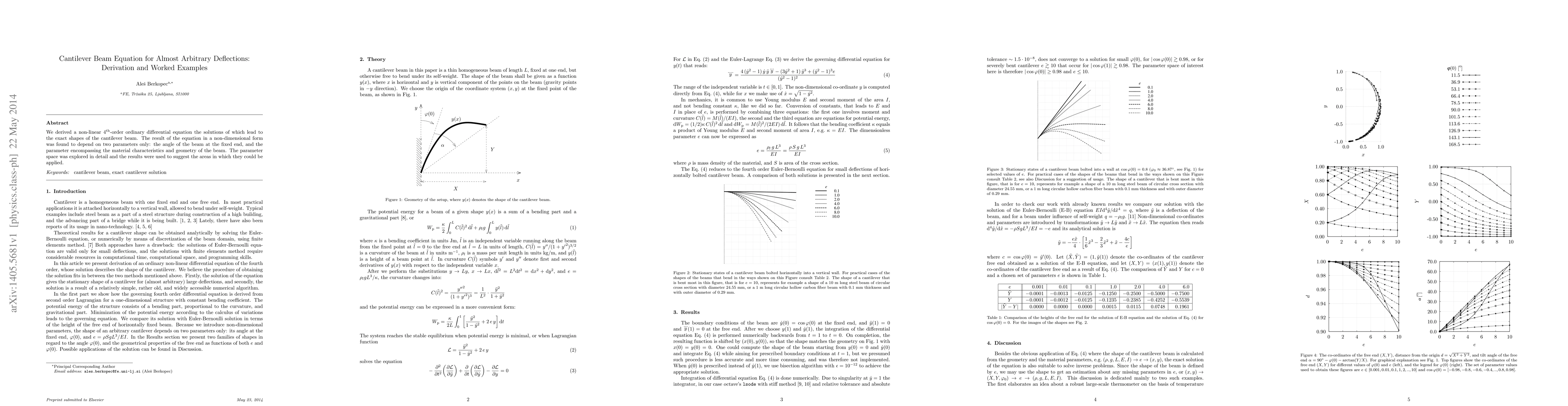 This paper derives a non-linear 4th-order ODE for the exact shape of cantilever beams, revealing solutions dependent on two parameters: the angle at the fixed end and a composite parameter of material and geometry. The parameter space is explored to suggest practical applications.