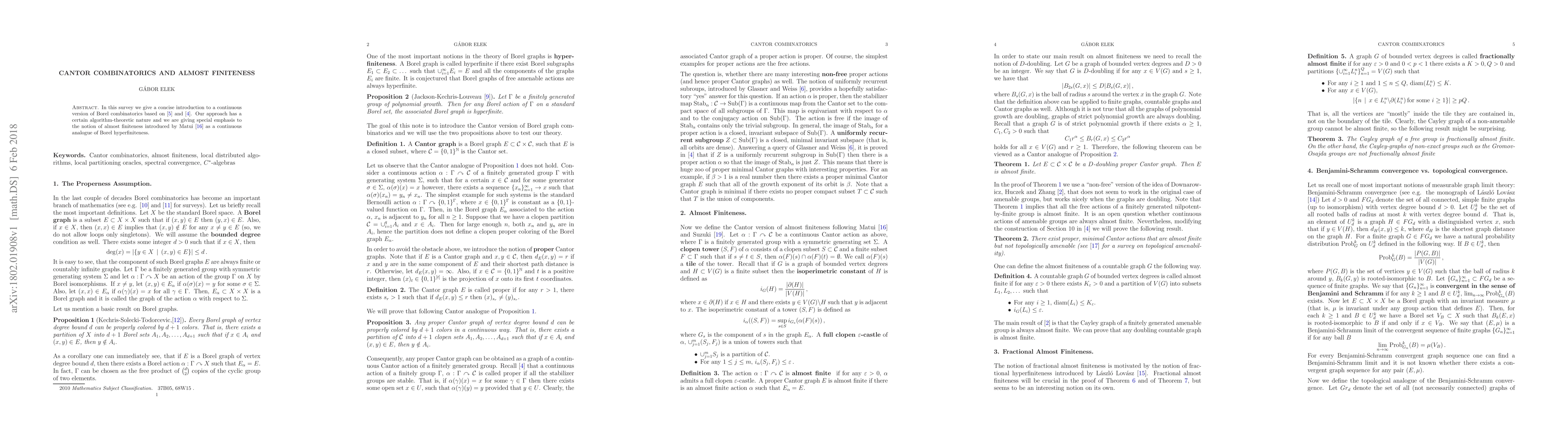This paper introduces a continuous version of Borel combinatorics with an algorithmic approach, focusing on the concept of almost finiteness as a continuous analogue of Borel hyperfiniteness. It also demonstrates applications in studying spectral convergence for graph Laplacians.