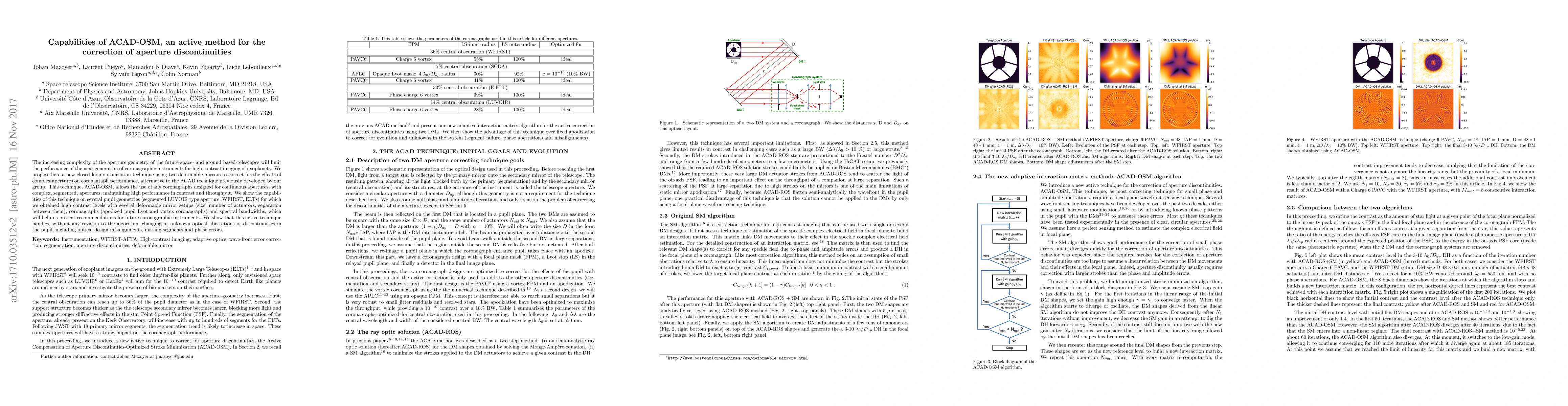The increasing complexity of the aperture geometry of the future space- and ground based-telescopes will limit the performance of the next generation of coronagraphic instruments for high contrast imaging of exoplanets. We propose here a new closed-loop optimization technique using two deformable mirrors to correct for the effects of complex apertures on coronagraph performance, alternative to the ACAD technique previously developed by our group. This technique, ACAD-OSM, allows the use of any coronagraphs designed for continuous apertures, with complex, segmented, apertures, maintaining high performance in contrast and throughput. We show the capabilities of this technique on several pupil geometries (segmented LUVOIR type aperture, WFIRST, ELTs) for which we obtained high contrast levels with several deformable mirror setups (size, number of actuators, separation between them), coronagraphs (apodized pupil Lyot and vortex coronagraphs) and spectral bandwidths, which will help us present recommendations for future coronagraphic instruments. We show that this active technique handles, without any revision to the algorithm, changing or unknown optical aberrations or discontinuities in the pupil, including optical design misalignments, missing segments and phase errors.