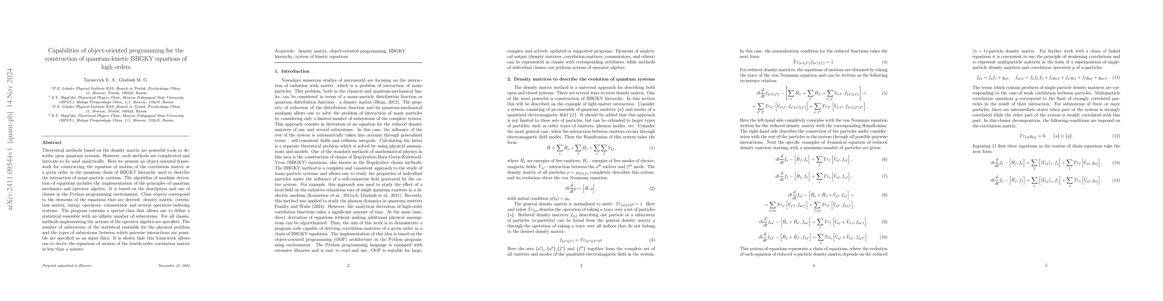 This paper introduces an object-oriented framework in Python for constructing quantum-kinetic BBGKY equations of high orders, simplifying the derivation of equations of motion for many-particle systems. The framework uses classes to represent density matrices, correlation matrices, and other quantum mechanical elements, enabling rapid derivation of equations, such as those for the fourth-order correlation matrix.