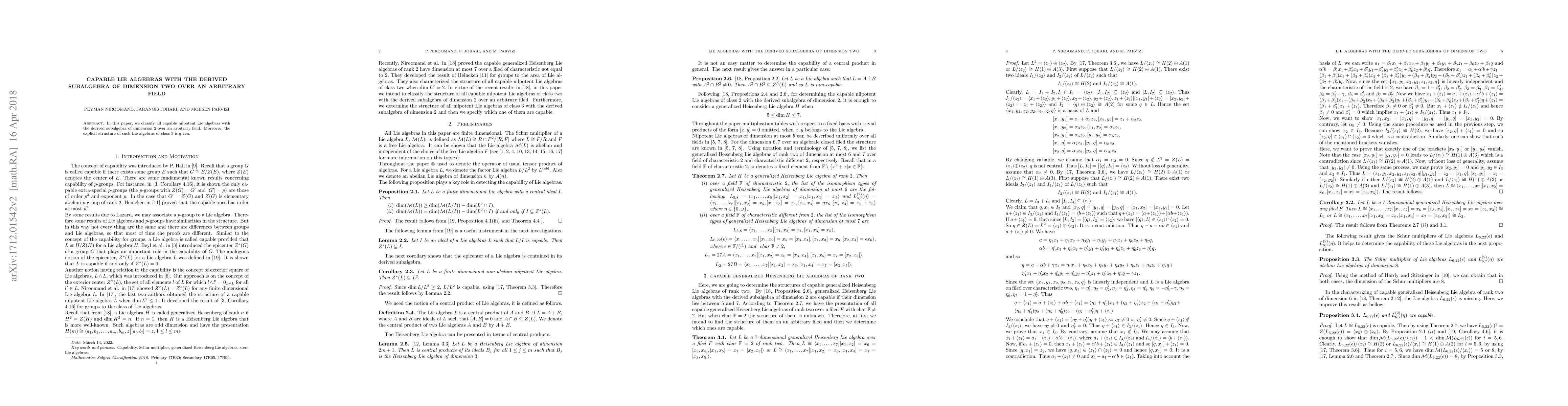 This paper classifies all capable nilpotent Lie algebras with a 2-dimensional derived subalgebra over any field, and provides the explicit structure for such Lie algebras of class 3.