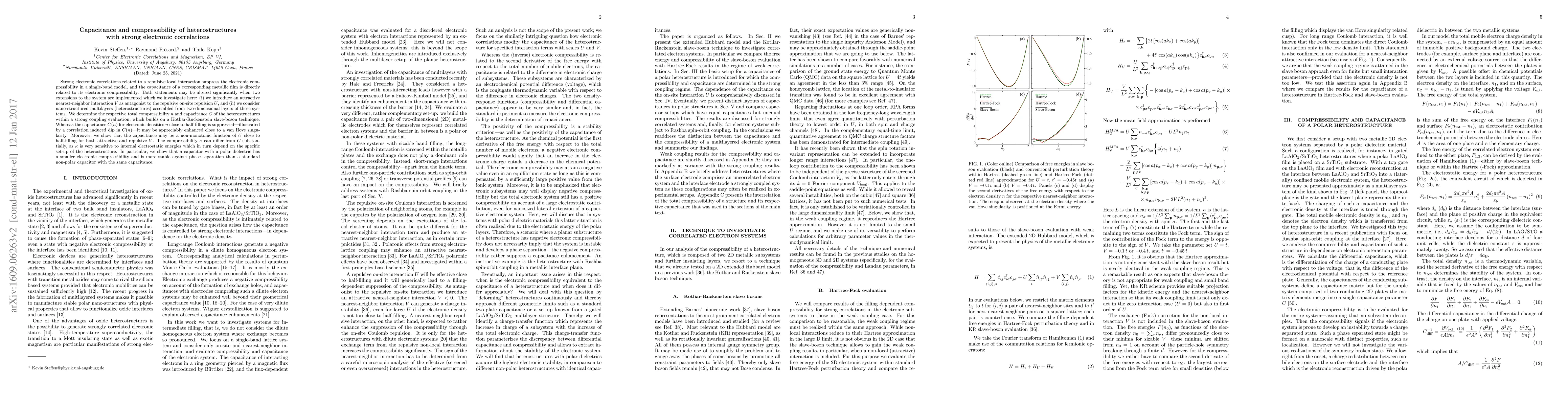Strong electronic correlations related to a repulsive local interaction suppress the electronic compressibility in a single-band model, and the capacitance of a corresponding metallic film is directly related to its electronic compressibility. Both statements may be altered significantly when two extensions to the system are implemented which we investigate here: (i) we introduce an attractive nearest-neighbor interaction $V$ as antagonist to the repulsive on-site repulsion $U$, and (ii) we consider nano-structured multilayers (heterostructures) assembled from two-dimensional layers of these systems. We determine the respective total compressibility $\kappa$ and capacitance $C$ of the heterostructures within a strong coupling evaluation, which builds on a Kotliar-Ruckenstein slave-boson technique. Whereas the capacitance $C(n)$ for electronic densities $n$ close to half-filling is suppressed---illustrated by a correlation induced dip in $C(n)$---it may be appreciably enhanced close to a van Hove singularity. Moreover, we show that the capacitance may be a non-monotonic function of $U$ close to half-filling for both attractive and repulsive $V$. The compressibility $\kappa$ can differ from $C$ substantially, as $\kappa$ is very sensitive to internal electrostatic energies which in turn depend on the specific set-up of the heterostructure. In particular, we show that a capacitor with a polar dielectric has a smaller electronic compressibility and is more stable against phase separation than a standard non-polar capacitor with the same capacitance.