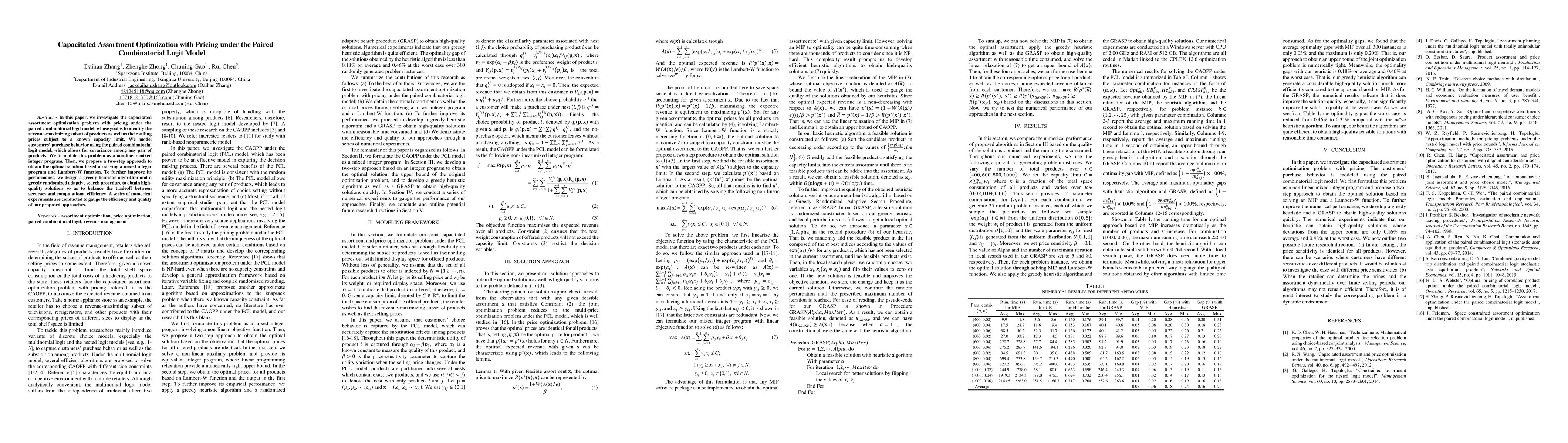 This paper explores capacitated assortment optimization with pricing under the paired combinatorial logit model, aiming to maximize revenue by selecting optimal product subsets and pricing, subject to capacity constraints. It proposes a two-step solution approach and heuristics to balance accuracy and efficiency, validated through numerical experiments.