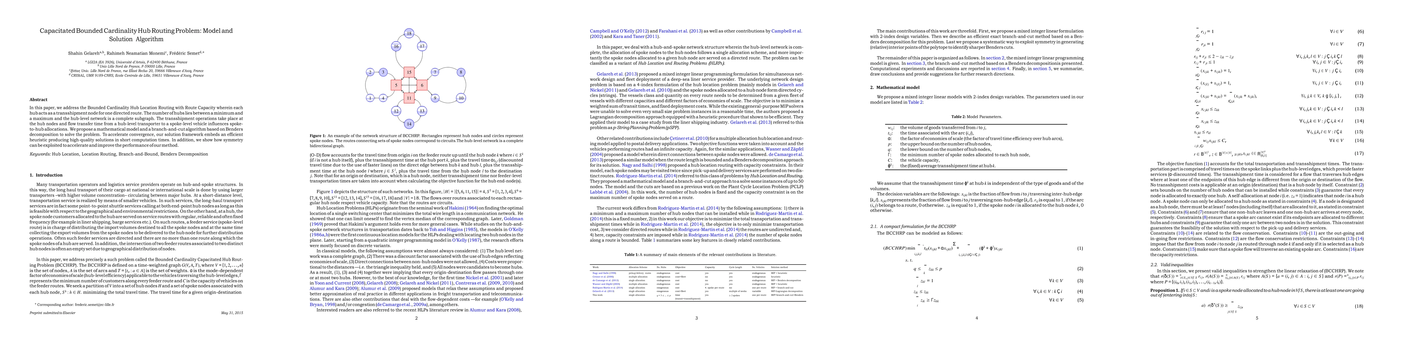 In this paper, we address the Bounded Cardinality Hub Location Routing with Route Capacity wherein each hub acts as a transshipment node for one directed route. The number of hubs lies between a minimum and a maximum and the hub-level network is a complete subgraph. The transshipment operations take place at the hub nodes and flow transfer time from a hub-level transporter to a spoke-level vehicle influences spoke- to-hub allocations. We propose a mathematical model and a branch-and-cut algorithm based on Benders decomposition to solve the problem. To accelerate convergence, our solution framework embeds an efficient heuristic producing high-quality solutions in short computation times. In addition, we show how symmetry can be exploited to accelerate and improve the performance of our method.