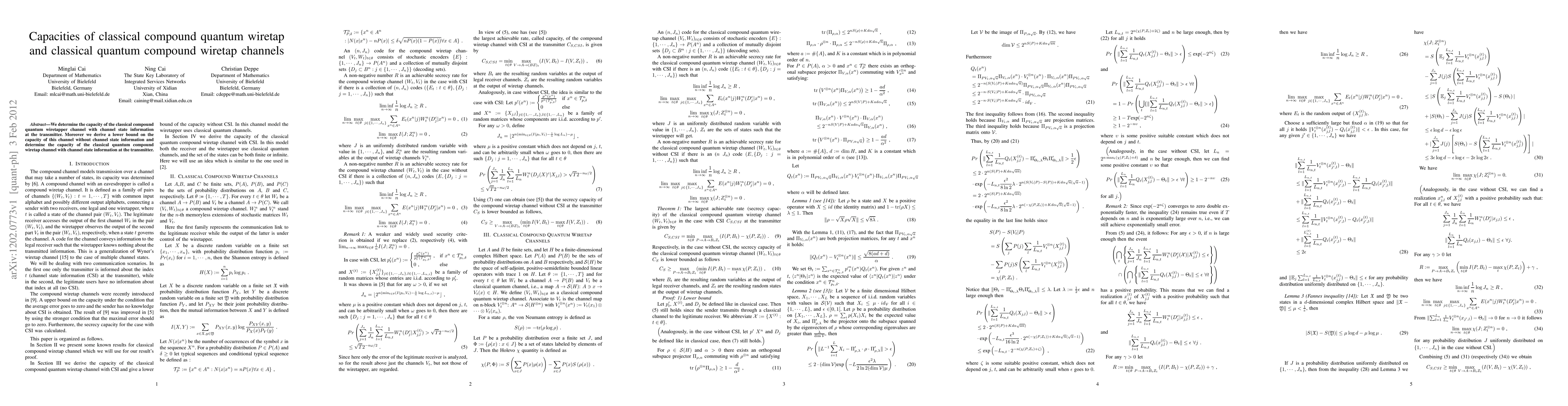 This paper determines the capacity of the classical compound quantum wiretapper channel with transmitter channel state information and derives a lower bound on its capacity without such information. It also determines the capacity of the classical quantum compound wiretap channel with transmitter channel state information.