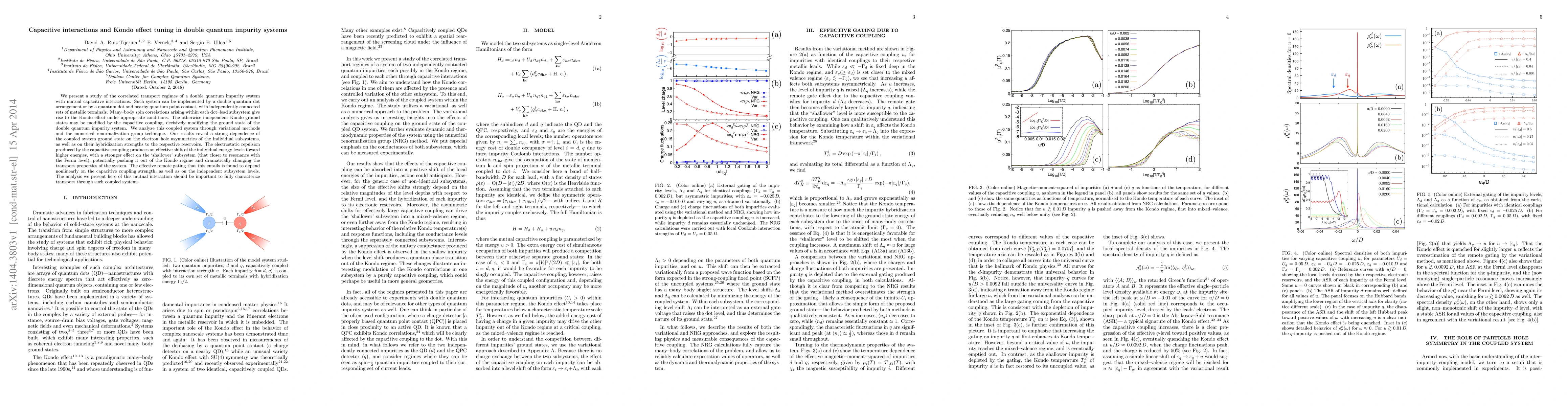 We present a study of the correlated transport regimes of a double quantum impurity system with mutual capacitive interactions. Such system can be implemented by a double quantum dot arrangement or by a quantum dot and nearby quantum point contact, with independently connected sets of metallic terminals. Many--body spin correlations arising within each dot--lead subsystem give rise to the Kondo effect under appropriate conditions. The otherwise independent Kondo ground states may be modified by the capacitive coupling, decisively modifying the ground state of the double quantum impurity system. We analyze this coupled system through variational methods and the numerical renormalization group technique. Our results reveal a strong dependence of the coupled system ground state on the electron--hole asymmetries of the individual subsystems, as well as on their hybridization strengths to the respective reservoirs. The electrostatic repulsion produced by the capacitive coupling produces an effective shift of the individual energy levels toward higher energies, with a stronger effect on the `shallower' subsystem (that closer to resonance with the Fermi level), potentially pushing it out of the Kondo regime and dramatically changing the transport properties of the system. The effective remote gating that this entails is found to depend nonlinearly on the capacitive coupling strength, as well as on the independent subsystem levels. The analysis we present here of this mutual interaction should be important to fully characterize transport through such coupled systems.