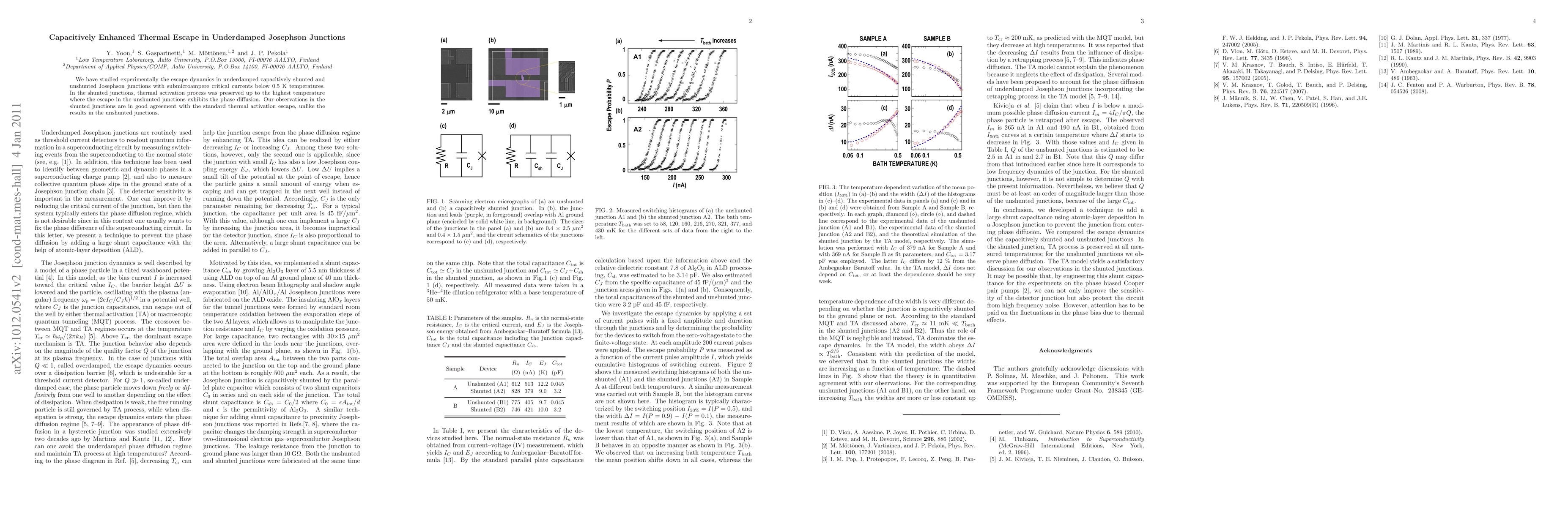 This research investigates escape dynamics in underdamped Josephson junctions, finding that capacitively shunted junctions exhibit standard thermal activation escape even at high temperatures, while unshunted junctions show phase diffusion. The study highlights the role of capacitance in preserving thermal escape behavior.
