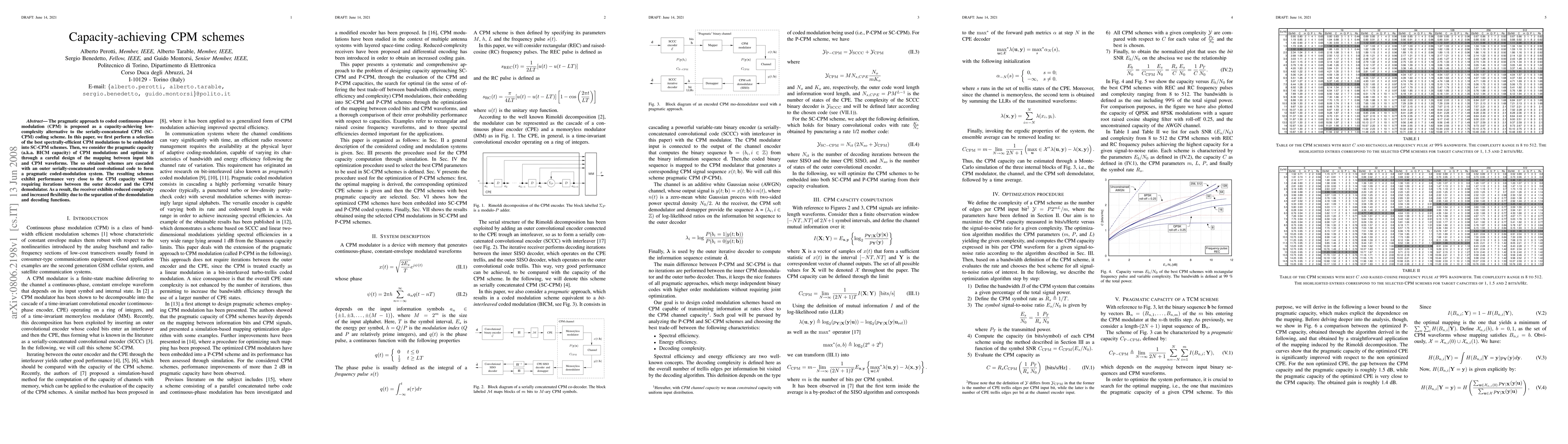 This paper proposes a low-complexity, capacity-achieving coded continuous-phase modulation (CPM) scheme as an alternative to serially-concatenated CPM. It optimizes spectrally-efficient CPM modulations and pragmatic capacity through bit-to-waveform mapping, achieving performance close to CPM capacity with reduced receiver complexity.