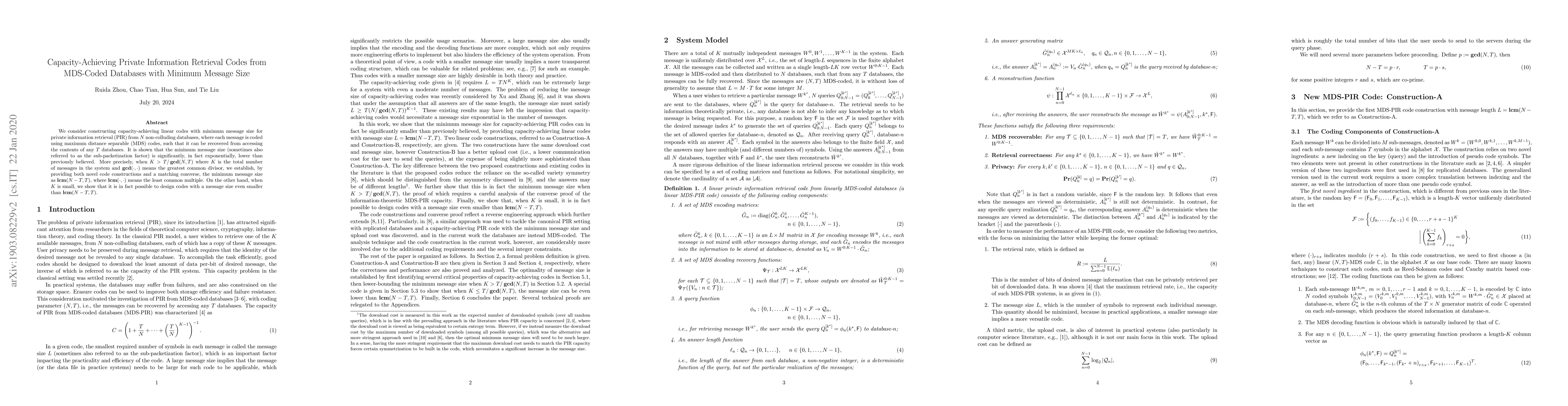 This paper constructs capacity-achieving linear codes with minimum message size for private information retrieval from MDS-coded databases, demonstrating that the minimum message size can be exponentially lower than previously believed. The optimal message size is shown to be $\textbf{lcm}(N-T,T)$ under certain conditions, with further reductions possible when the number of messages is small.