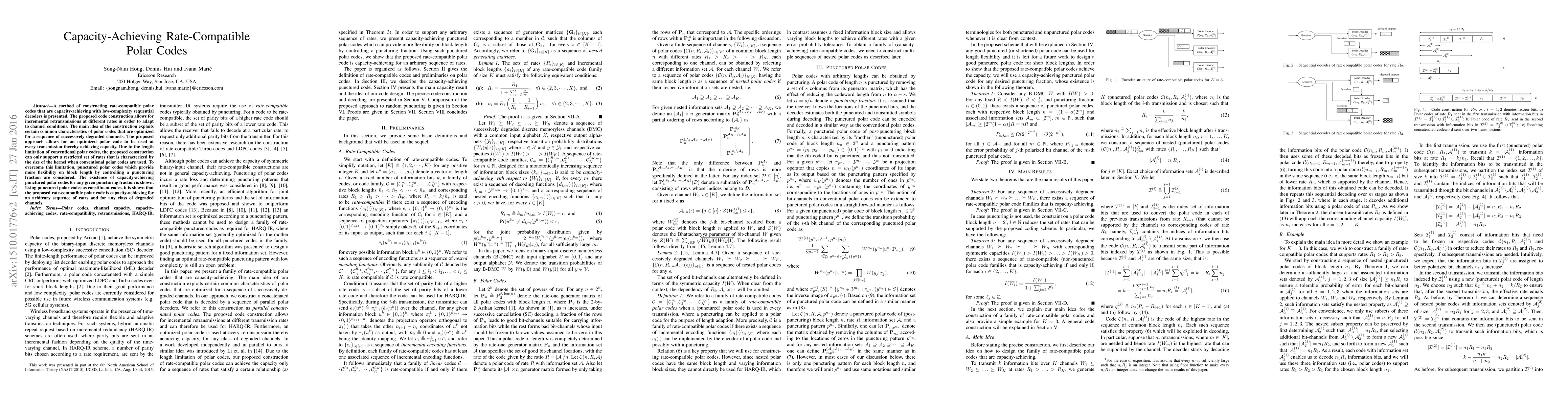 This paper introduces a method for creating rate-compatible polar codes that reach channel capacity with low-complexity decoders. It allows adaptive retransmissions at various rates to accommodate changing channel conditions.