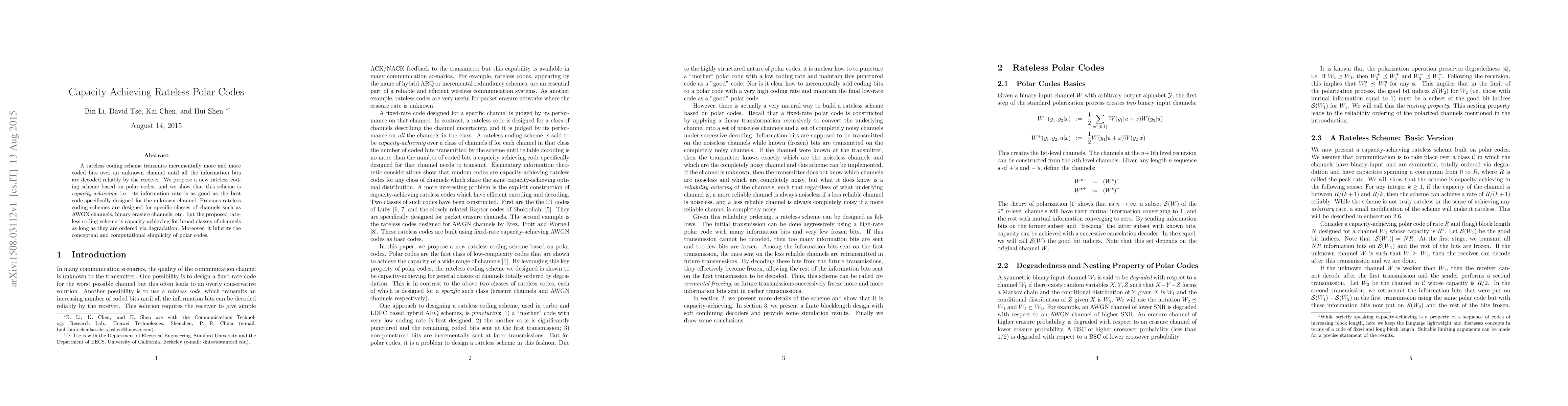 The paper introduces a capacity-achieving rateless coding scheme based on polar codes that adapts to various channel types, maintaining the simplicity and efficiency of polar codes while ensuring optimal information rate for broad classes of ordered degraded channels.