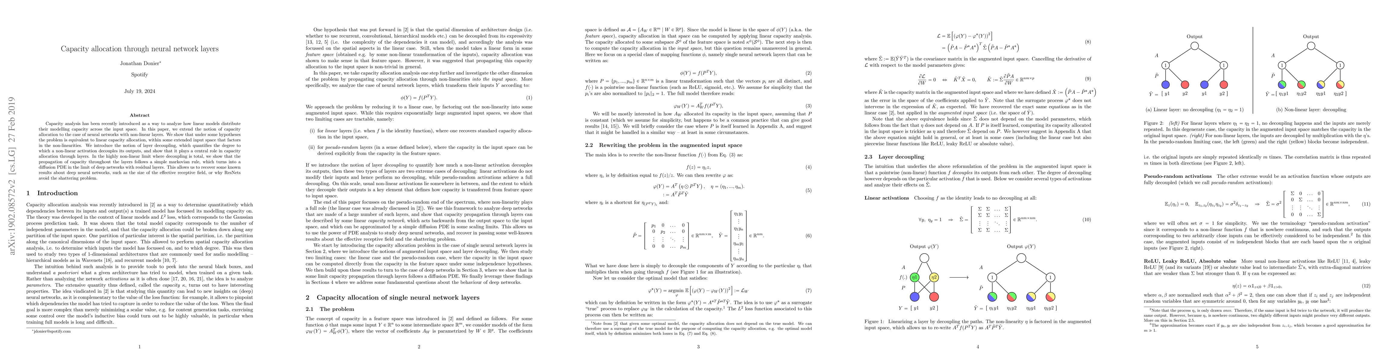 Capacity analysis has been recently introduced as a way to analyze how linear models distribute their modelling capacity across the input space. In this paper, we extend the notion of capacity allocation to the case of neural networks with non-linear layers. We show that under some hypotheses the problem is equivalent to linear capacity allocation, within some extended input space that factors in the non-linearities. We introduce the notion of layer decoupling, which quantifies the degree to which a non-linear activation decouples its outputs, and show that it plays a central role in capacity allocation through layers. In the highly non-linear limit where decoupling is total, we show that the propagation of capacity throughout the layers follows a simple markovian rule, which turns into a diffusion PDE in the limit of deep networks with residual layers. This allows us to recover some known results about deep neural networks, such as the size of the effective receptive field, or why ResNets avoid the shattering problem.