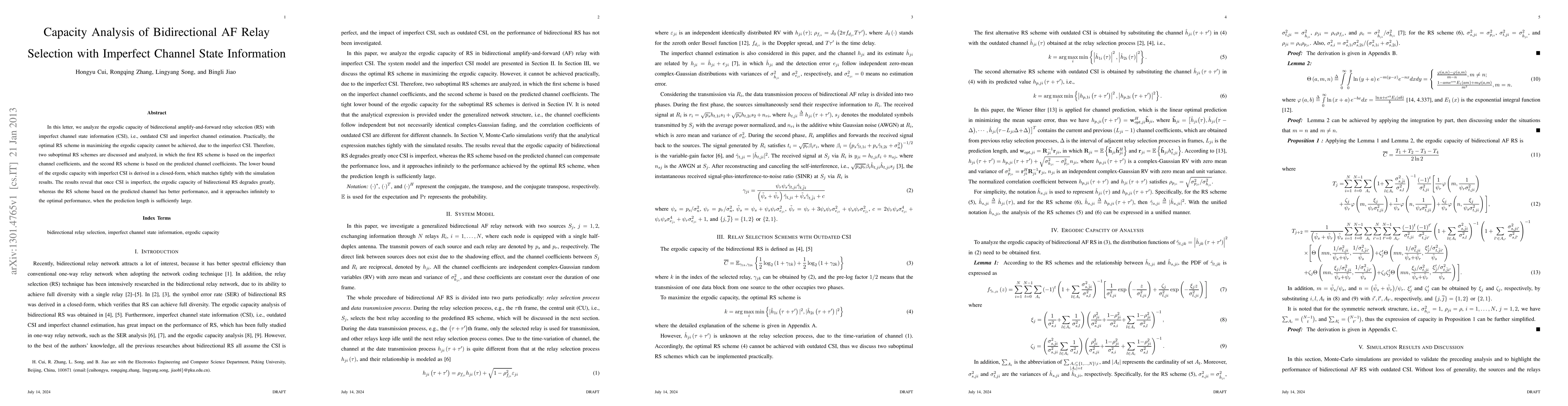 This paper analyzes the ergodic capacity of bidirectional amplify-and-forward relay selection under imperfect channel state information, deriving a closed-form lower bound. It proposes two suboptimal relay selection schemes, showing that predicted channel coefficients yield better performance as the prediction length increases.
