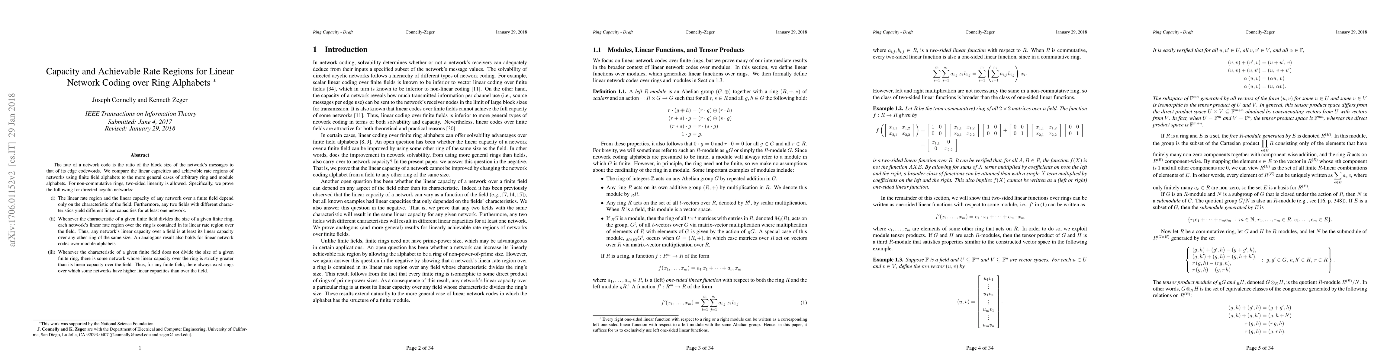 This paper investigates the linear capacities and achievable rate regions for network coding over finite field, ring, and module alphabets, demonstrating that the linear capacity over a finite field depends on its characteristic, and that for certain rings, network capacities can exceed those over fields when the field's characteristic does not divide the ring's size.