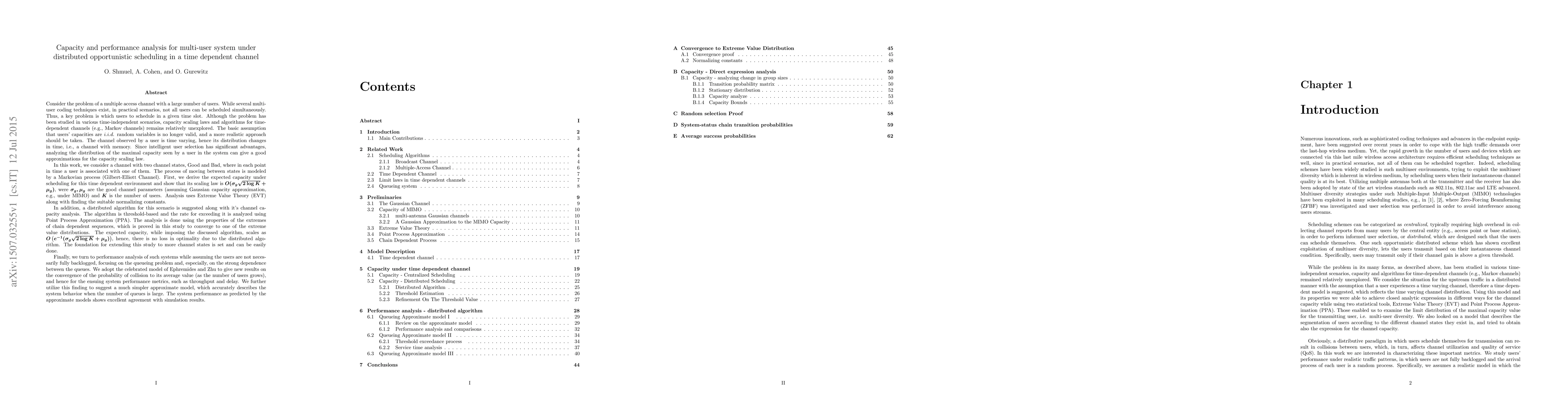Consider the problem of a multi-user multiple access channel. While several multi-user coding techniques exist, in practical scenarios, not all users can be scheduled simultaneously. Thus, a key problem is which users to schedule in a given time slot. Under realistic approach for time dependency of the channel, we adopt a distributed scheduling algorithm in which each user, in the beginning of each slot, estimates his channel gain and compares it to a threshold, and if exceeding it the user can transmit. In this work we are interested in the expected capacity of the system and the delay and quality of service of the data accumulated at the users under this scheduling scheme. First we derive the expected capacity under scheduling (distributed and centralized) for this time dependent environment and show that its scaling law is $O(\sigma_g\sqrt{2\log K}+\mu_g)$, were $\sigma_g, \mu_g$ are the good channel parameters (assuming Gaussian capacity approximation, e.g., under MIMO) and $K$ is the number of users. Then we turn to the performance analysis of such system while assuming the users are not necessarily fully backlogged, and focus specifically on the queueing problem and the strong dependence between the queues which leave no alternative but to turn to approximate models for this system. We adopt the celebrated model of Ephremides and Zhu to give new results on the convergence of the probability of collision to its average value (as the number of users grows), and hence for the ensuing system performance metrics, such as throughput and delay. We further utilize this finding to suggest a much simpler approximate model, which accurately describes the system behavior when the number of queues is large. The system performance as predicted by the approximate models shows excellent agreement with simulation results.