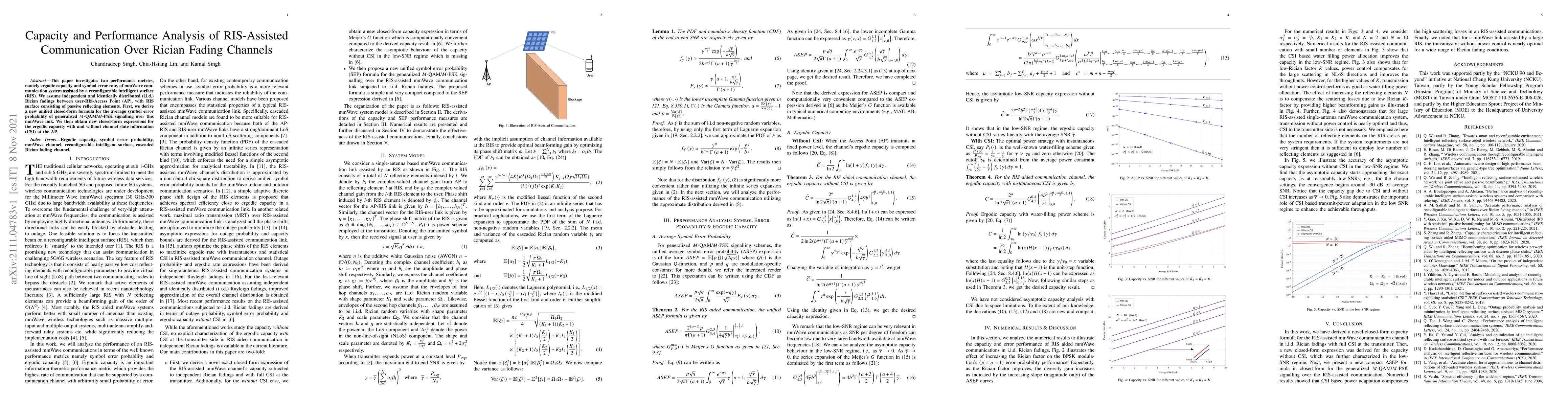 This paper analyzes performance metrics of mmWave communication systems using reconfigurable intelligent surfaces (RIS) in Rician fading channels, deriving new closed-form formulas for symbol error probability and ergodic capacity.