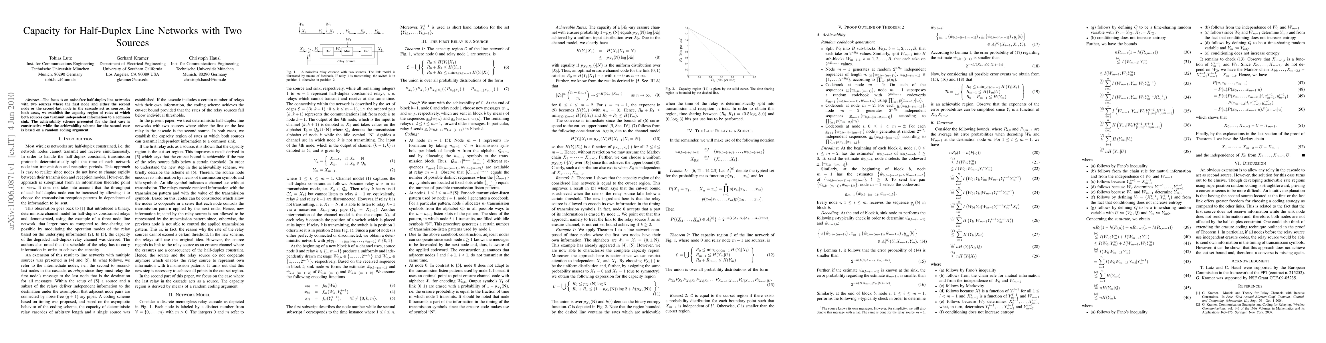 The focus is on noise-free half-duplex line networks with two sources where the first node and either the second node or the second-last node in the cascade act as sources. In both cases, we establish the capacity region of rates at which both sources can transmit independent information to a common sink. The achievability scheme presented for the first case is constructive while the achievability scheme for the second case is based on a random coding argument.