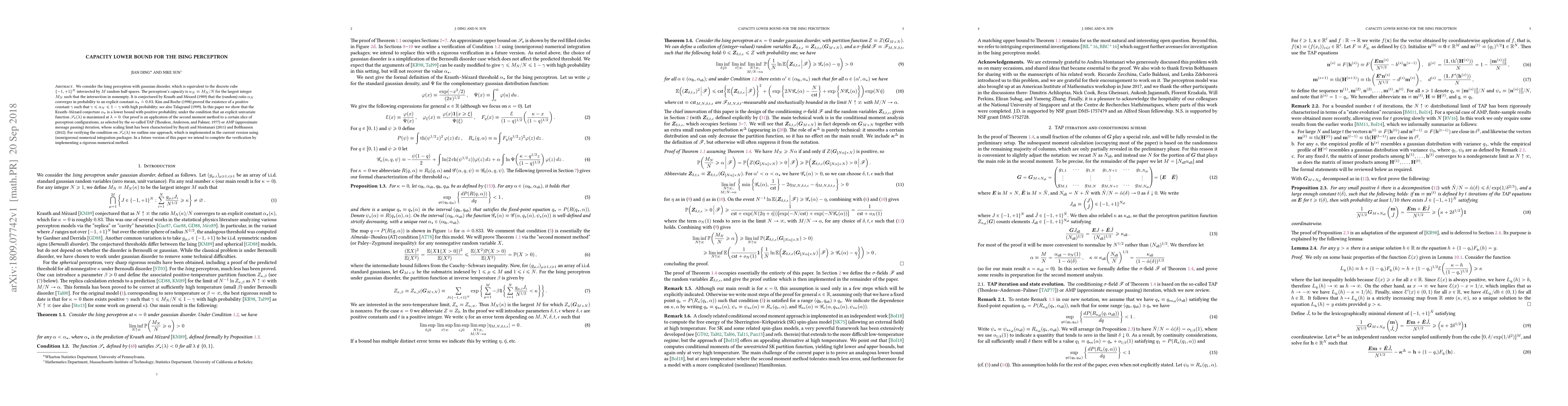This paper establishes that the Krauth-Mézard conjectured value $\alpha_\star$ is a lower bound for the capacity of the Ising perceptron with Gaussian disorder, using the second moment method and TAP iteration. A nonrigorous numerical approach is currently employed to verify the condition on $S(\lambda)$, with plans for a future rigorous implementation.